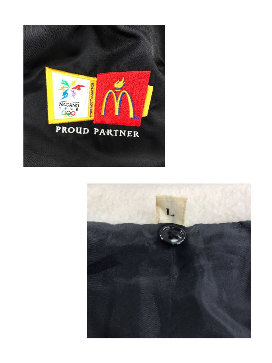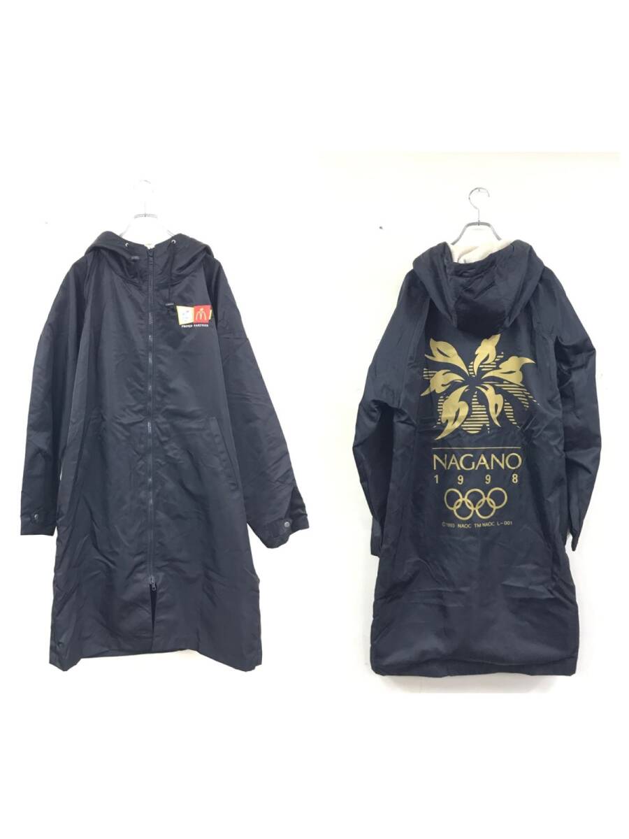 2O3136-U-N◆日本製◆90s MIZUNO ミズノ 98年 長野冬季オリンピック 五輪 ベンチコート ロング 秋冬◆sizeL 黒 ブラック ナイロン100