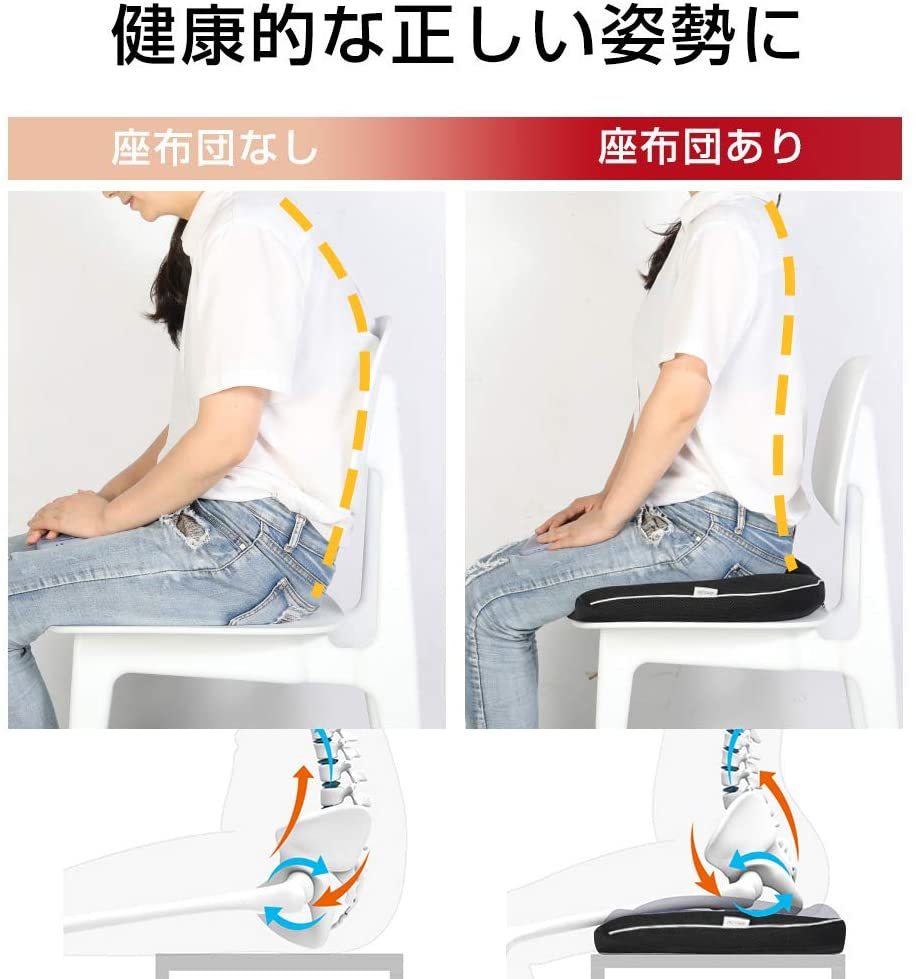 【座り心地グレードの新世代座布団】通気性抜群、体圧分散、優れたフィット感の第五代座布団はお尻や腰がラクラクでぴったりフィットして、椅子との直接接触力が減らさせ、蒸れやすい股間部の熱が完全に分散、この座布団を使用みると、背筋が自然に伸びるので、正しい座り方を維持できます、さらに長時間座っても疲れにくい、夏でもお尻が蒸し暑くない低反発クッションです。自宅でリラックスやオフィスなどでのデスクワークや長距離運転が多い方にオススメ低反発クッションです。