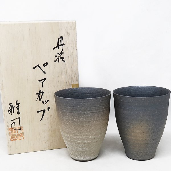 DKG★送料無料 未使用 丹波焼 まるせ窯 『 大上雅司 』 カップ 2個 箱付き 丹波 ペアカップ 雅司 陶器カップ ビアカップ 水割り 陶器 ペア