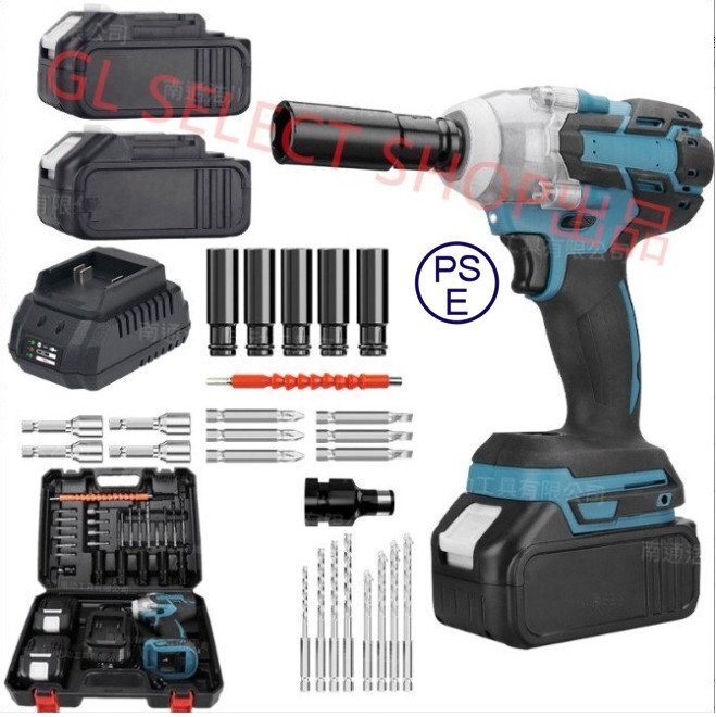 (A158)電動インパクトレンチ 520N.m 多点セ ット ー1台4役タイヤ交換 バッテリー併用電動ドリルドライバー セット 電池2個