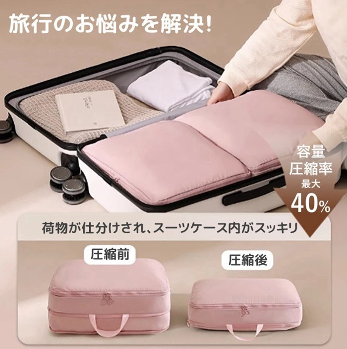 トラベルポーチ 圧縮ポーチ 2個セット ダウンコート収納 旅行 収納 おしゃれ 衣類圧縮バッグ ファスナー圧縮 収納ポーチ 通気穴付 防塵 出張 便利グッズ 衣類仕分け コンパクト 衣類 化粧品 靴 洗面用具 小物入れ 新生活応援 防災グッズ 無地 ギフト