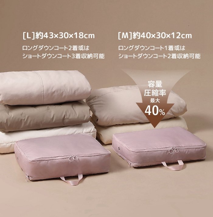 [L]約43×30×18cm / ロングダウンコート2着或はショートダウンコート3着収納可能