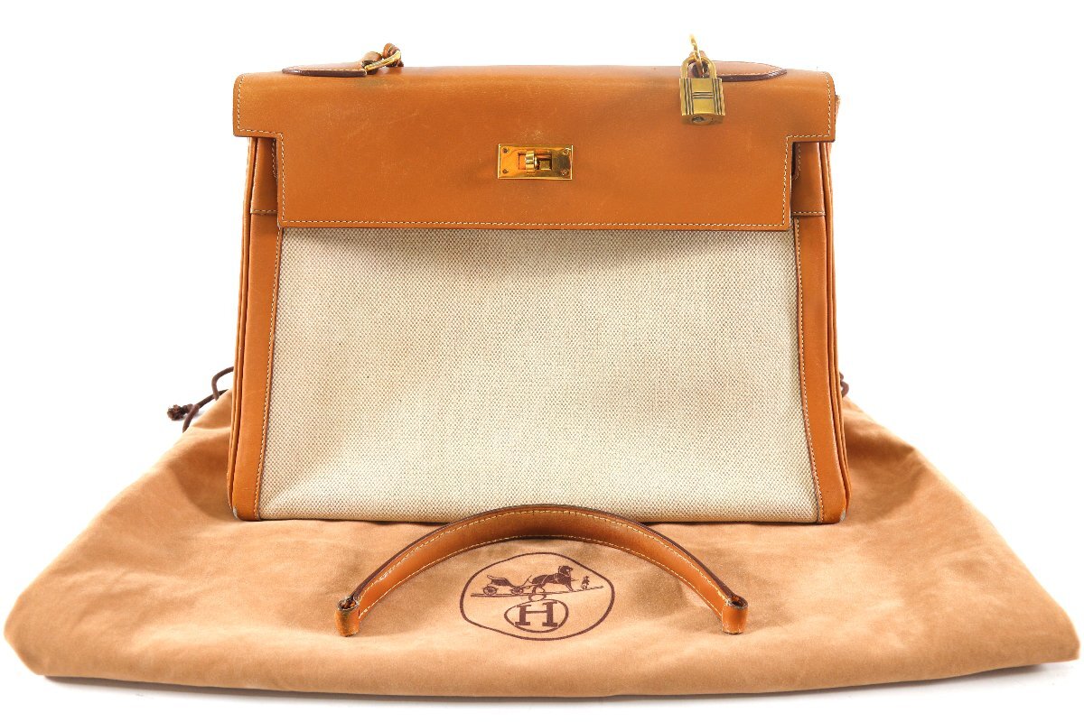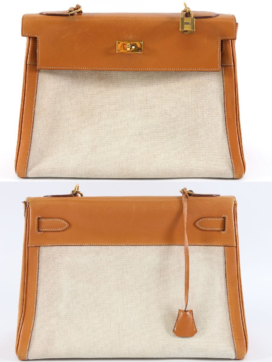 | HERMES エルメス ケリー キャンバス レザー 革 ハンドバッグ 手持ち ブラウン系 ファッション小物 レディース 鞄 かばん 3387-KI | |
