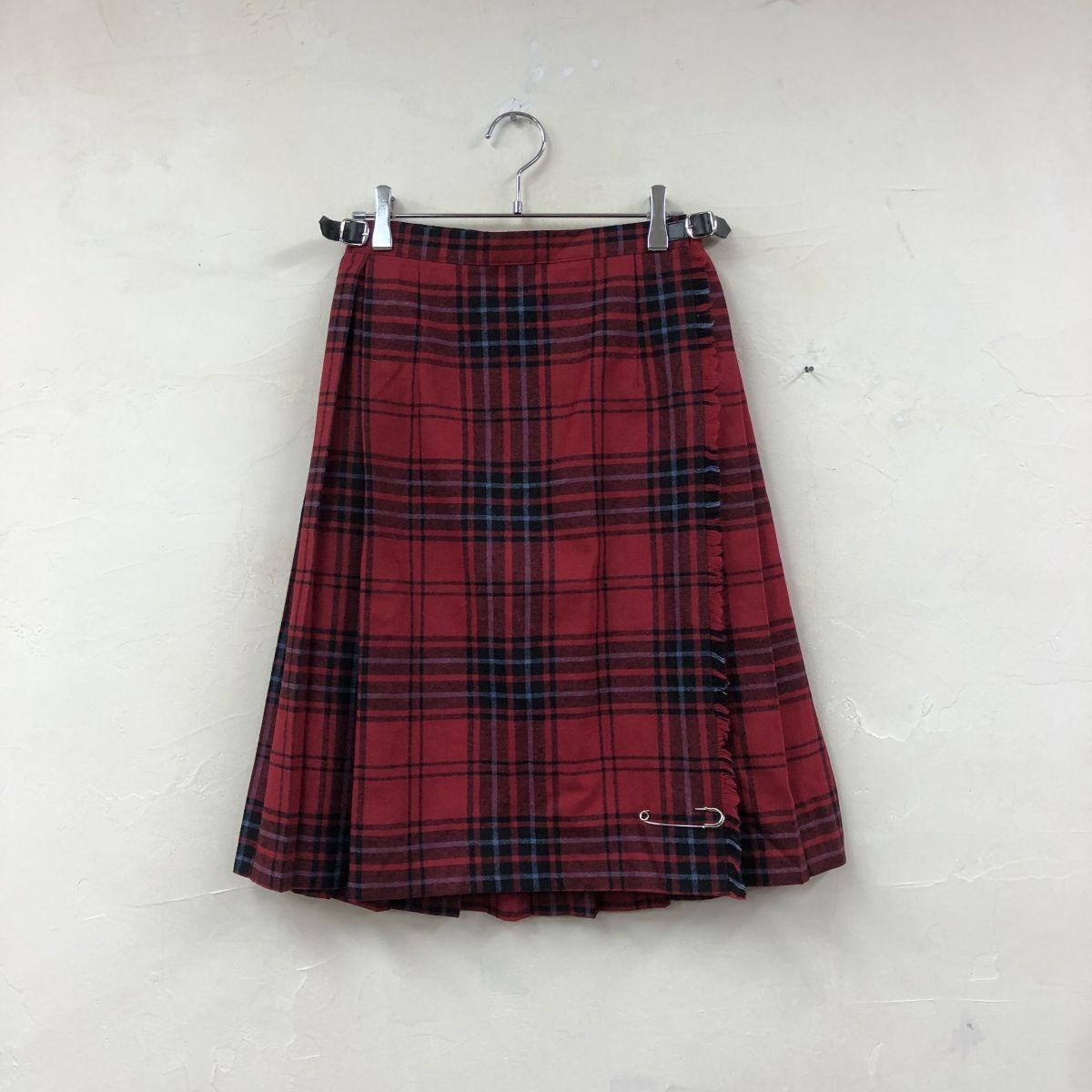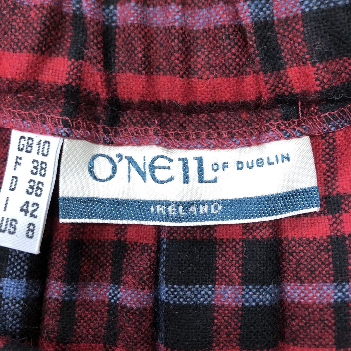 2N1006-Y-N◆O'NEIL オニール プリーツラップスカート ミニ 膝上 チェック フリンジ ベルト調節 レディース ◆size US8 I42 レッド 綿 ポリ