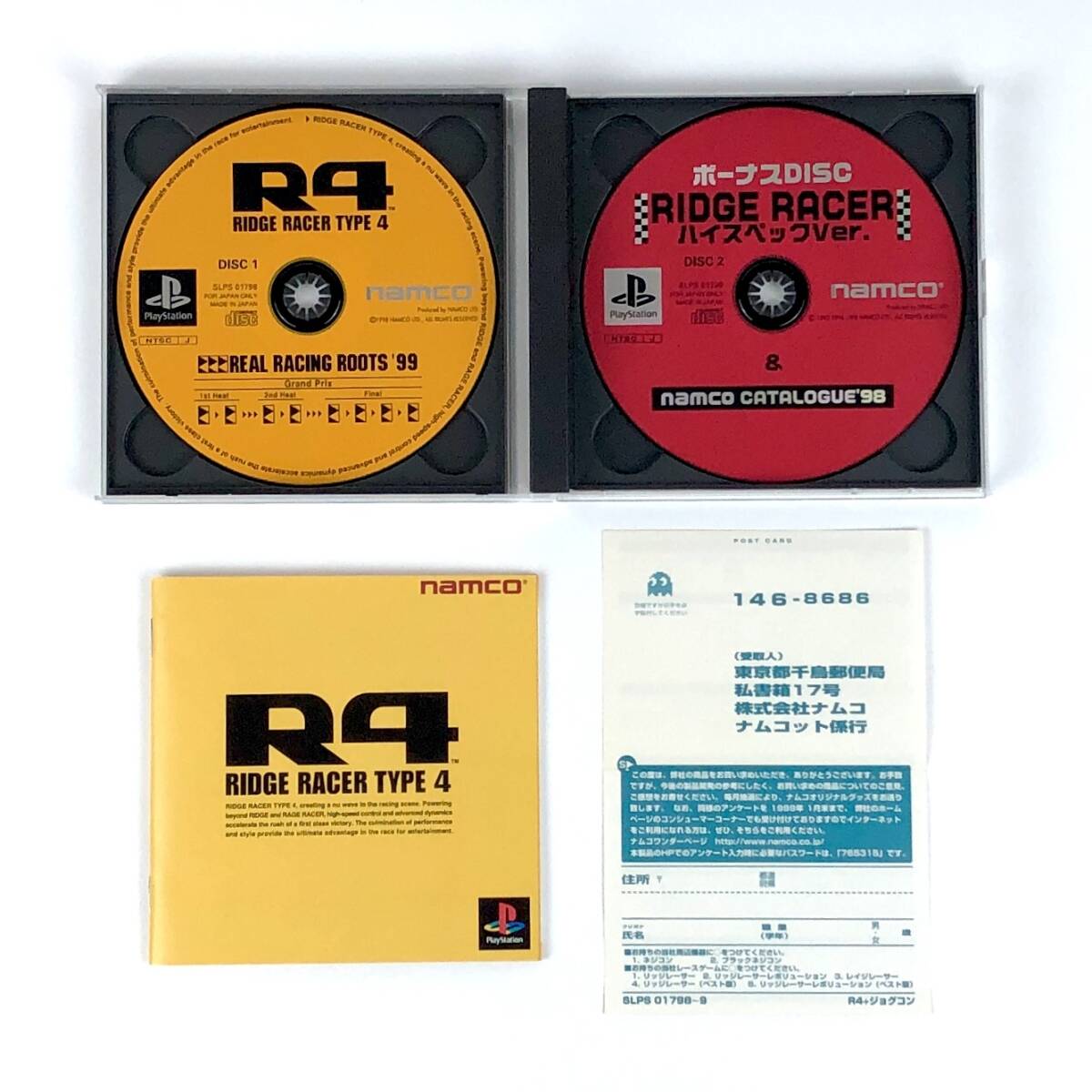 ■ 出品商品はプレイステーション用ソフト「R4 リッジレーサー タイプ4 ジョグコン同梱版 箱説付き 動作確認済み」になります。