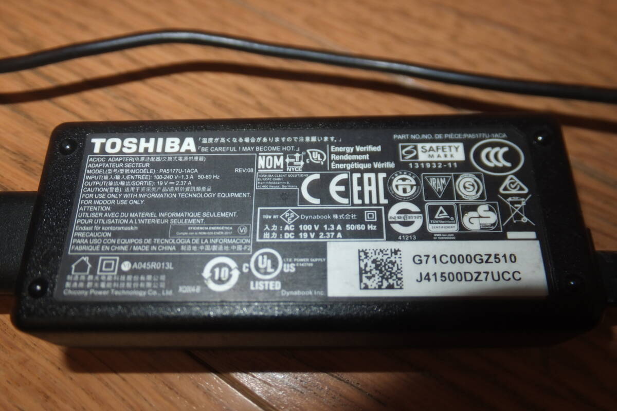 東芝 TOSHIBA dynabook 純正 パソコン ACアダプタ PA5177U-1ACA 電源コード ACコード 100-240V 1.3A 50-60Hz 19V=2.37Aの出品になります。