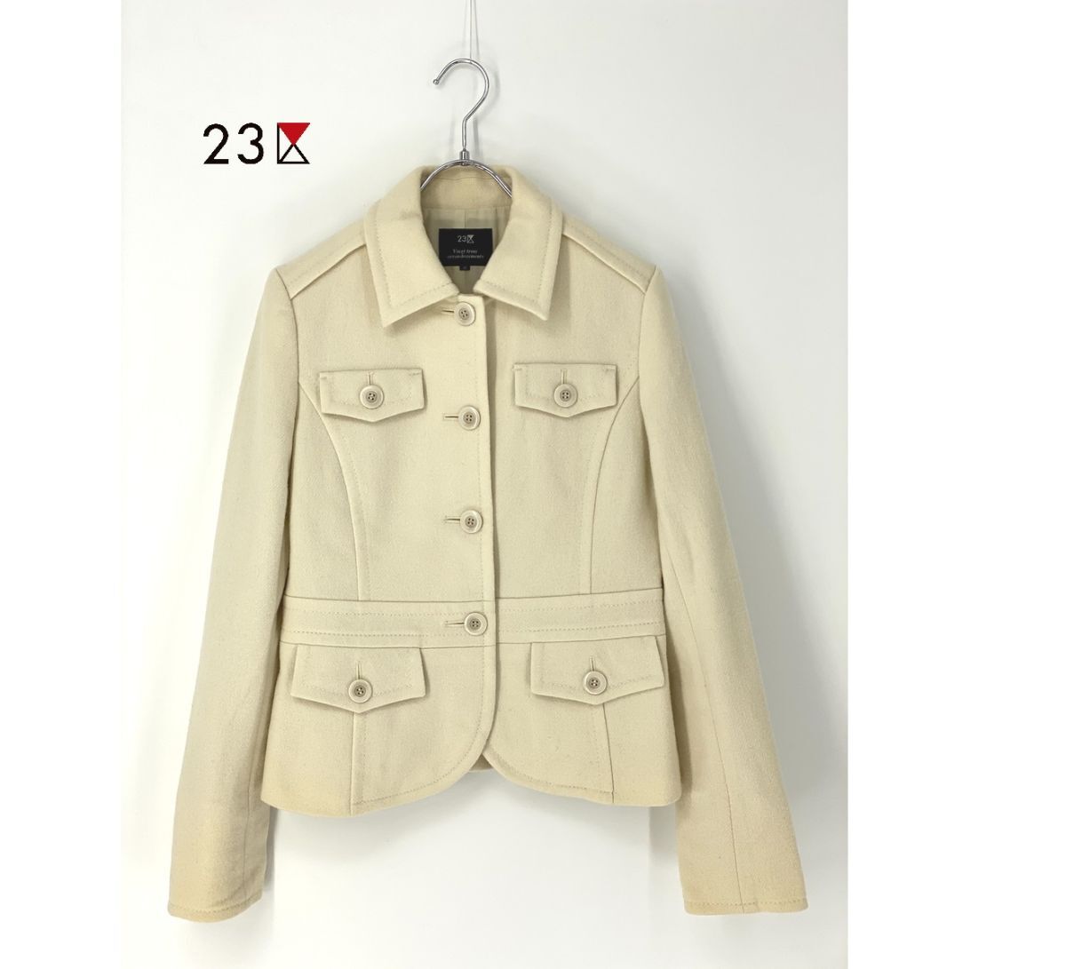 A6781/美品 秋冬 23区 ニジュウサンク ウール M65 ハーフコート ショート ジャケット ブルゾン 40 M程 アイボリー/日本製 レディース