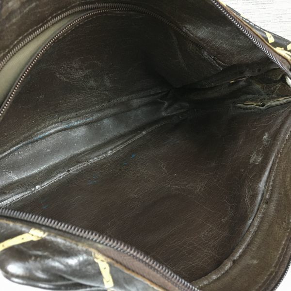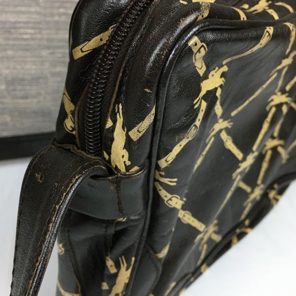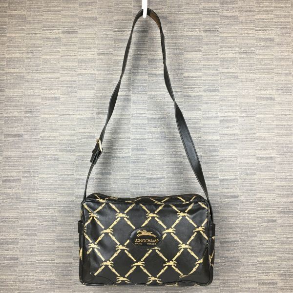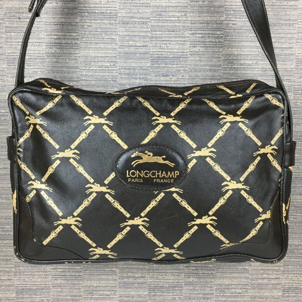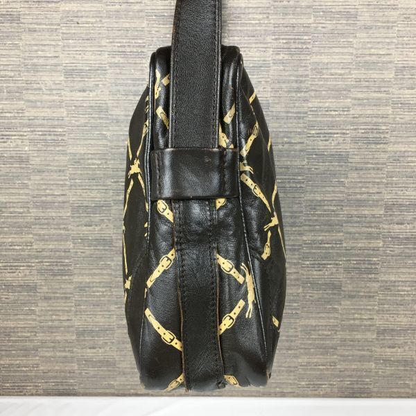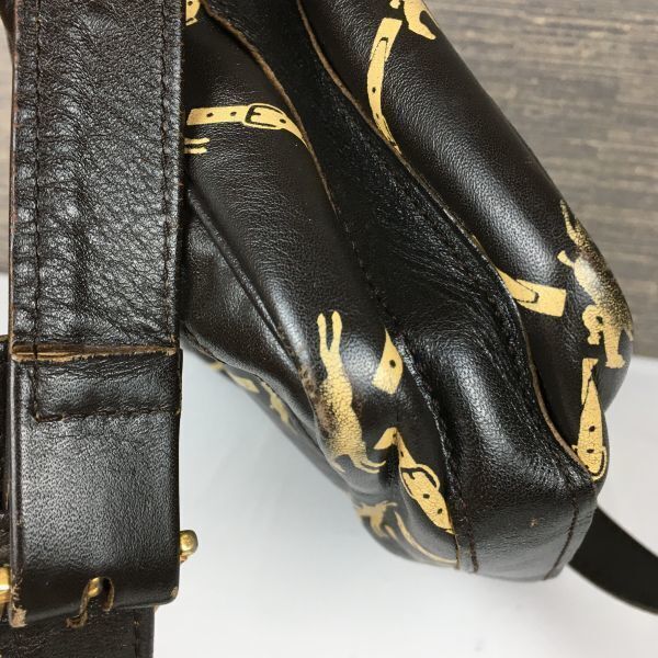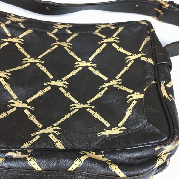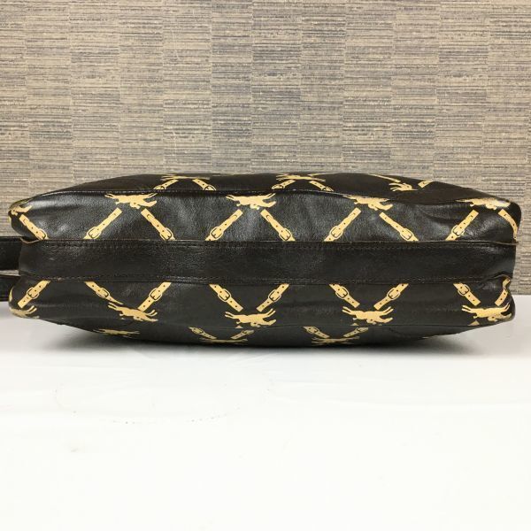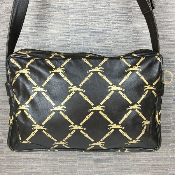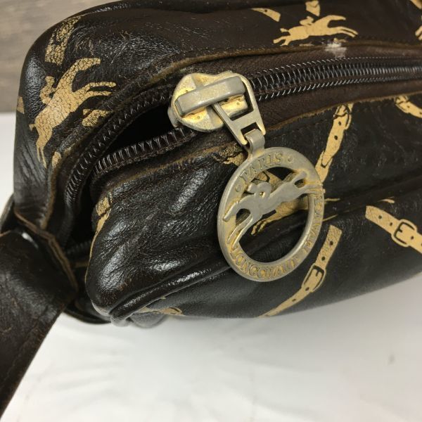 LONGCHAMP/ロンシャン レザー ショルダーバッグ ダークブラウン/焦げ茶 総柄 管NO.YB20-19