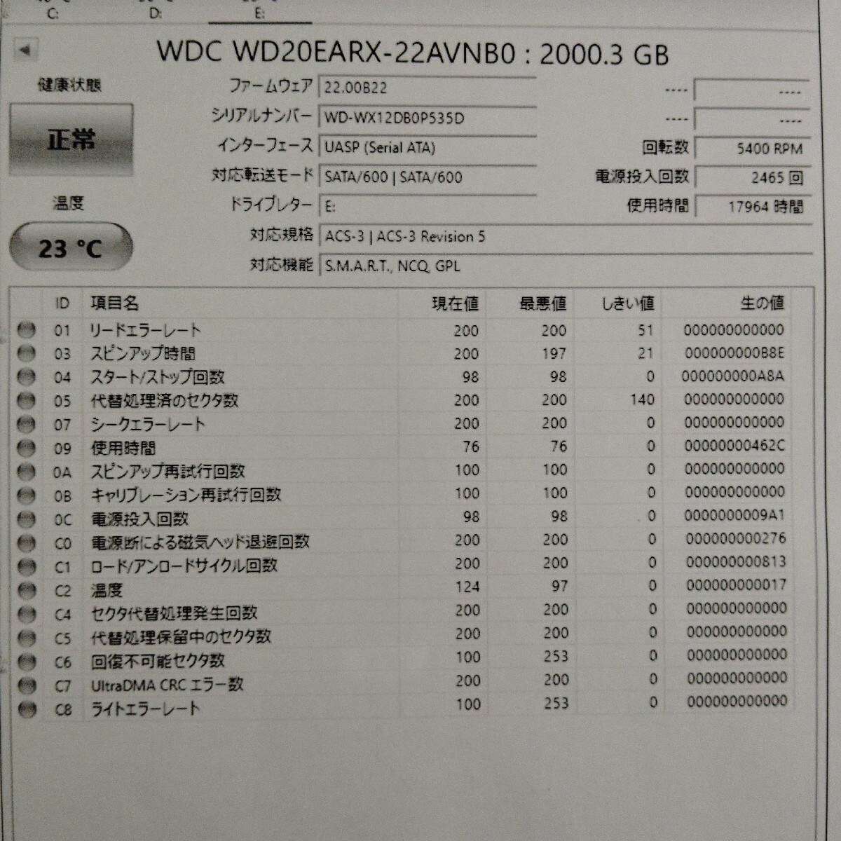 Crystal DiskInfo [正常] 動作確認済み