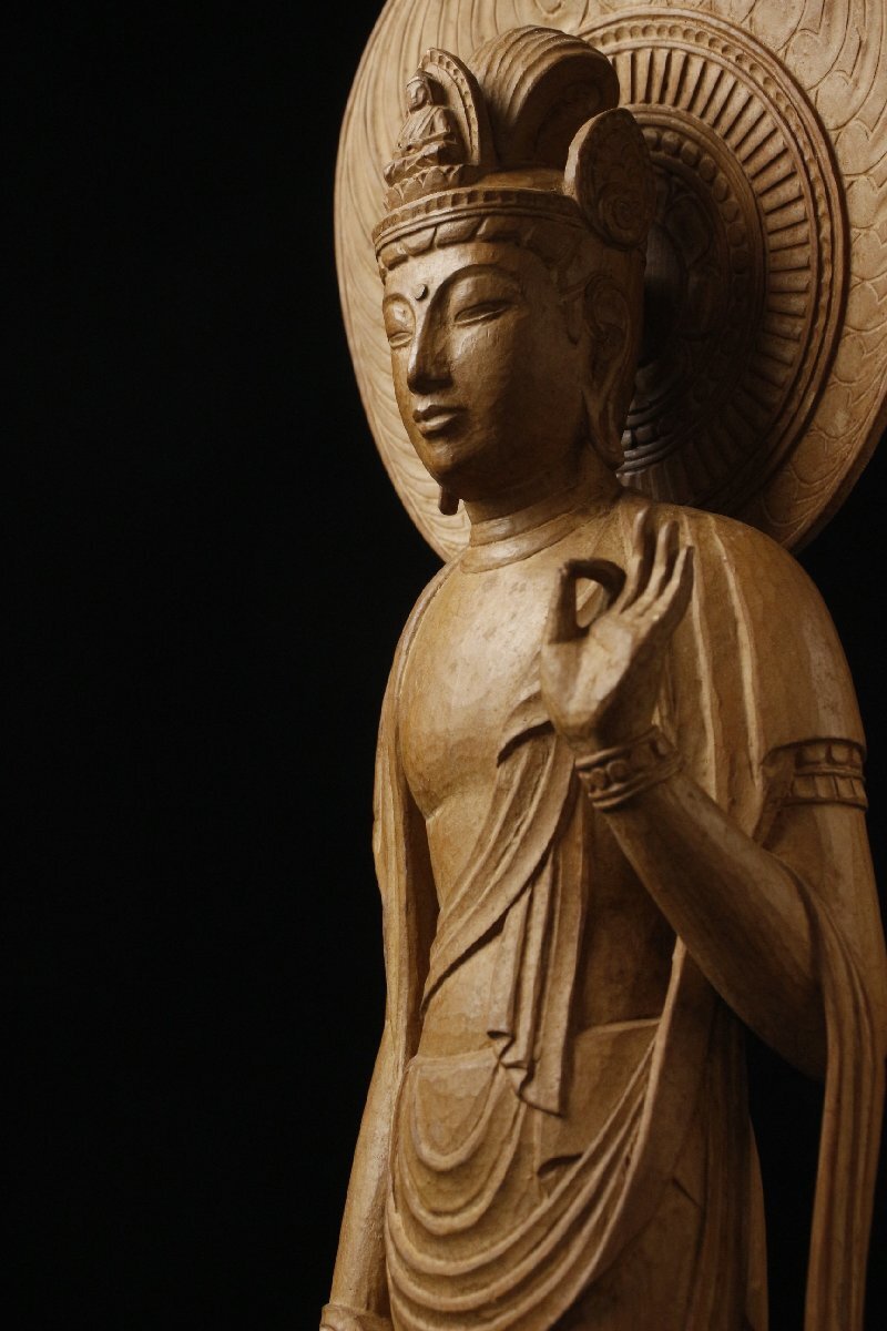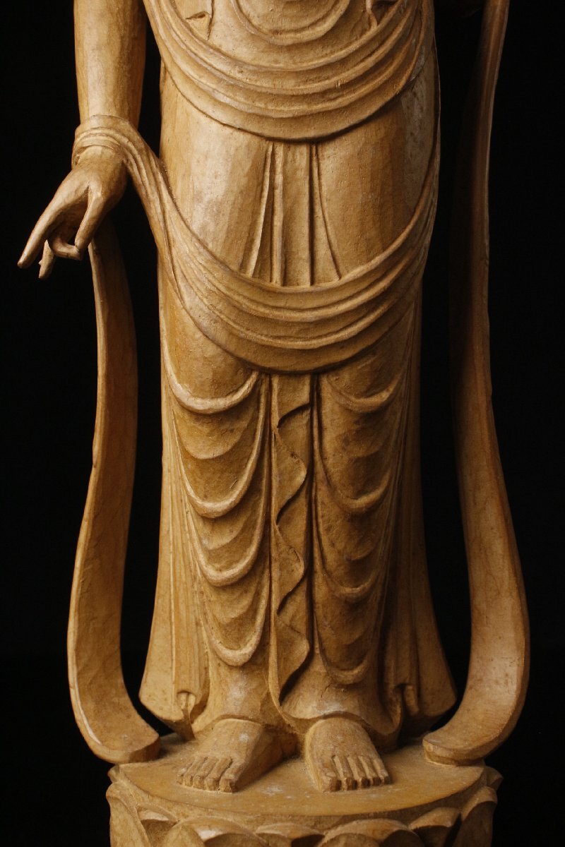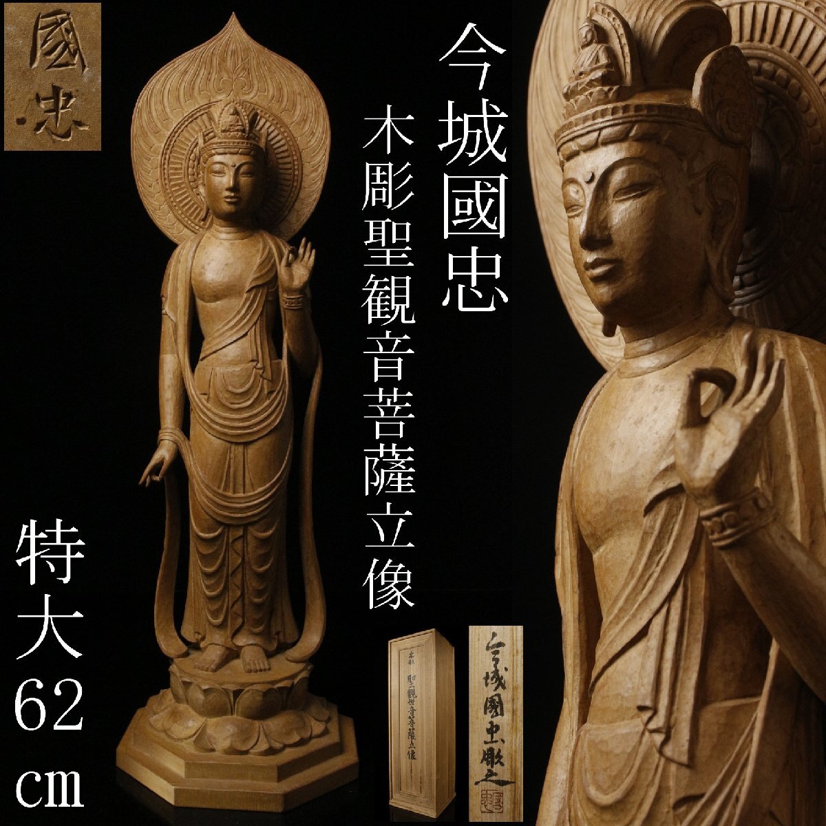 * * * 商品詳細 * * * ここでしか出逢うことのできない唯一の美をご紹介させて頂きます。 しなやかな佇まいに神々しい雰囲気をたたえた聖観音菩薩像のご紹介です。 木材の美しさが活かされた柔らかな肌地、慈悲を感じさせる優しいお顔、 指先まで神経の行き届いた素晴らしい出来栄えが見事です。 全長62㎝と大きく迫力もあり、確かな存在感と気品を感じさせる逸品です。 この機会に是非お手元にてご堪能下さい。 今城國忠 日本の芸術のメッカとしての文展、日展に作品を17回も連続入選(昭和34年現在)の 記録を持つ彫刻家今城国忠氏は、 今や我が国彫塑界第一線を行く作家と定評づけられている。 氏は大正5年広島県芦品郡府中町(現府中市)に生まれ、日展審査員澤田政廣氏の門に入り研鑽を重ね、 日本日本彫塑家クラブ会員、日展展覧会委員、現代綜合展招待作家などの待遇を受け、 また広島県展に中国新聞社賞、日本彫刻家倶楽部31年度奨励賞、 同32年度奨励賞、同34年度奨励賞を受けている。 ■商品内容/仏像、共箱 ■サイズ/横18㎝×高62㎝×奥行18㎝ 箱:横22.5㎝×高70.5㎝×奥行22.5㎝ ■状態/スレ、キズ、小さな欠け、シミ、光背の差し込み部分に直し、 箱にスレ、キズ、シミ、欠け、がたつきがございます。 ※写真にてご確認、ご了承の上ご入札下さい。 ![]() Yahoo!かんたん決済 * * * 発送詳細 * * * 入金確認後3営業日以内に発送致します。 ※直接引き取りも可能です。 60~160サイズにつきましては 佐川急便、ゆうパックのどちらかで発送いたします。 ゆうパック発送の場合、弊社の発送日から追跡サービスに問合せ番号が反映されるまで 約1日ほどお時間がかかりますのでご了承下さい。 佐川急便での発送の場合送料は下記のURLにてご確認下さい。 同梱を希望の場合は梱包サイズを測り直し 佐川急便の定価料金としますので ご了承ください。 * * * 注意事項 * * * 商品到着後、すみやかに受取連絡をお願いします。 また、運送中の破損があった場合は速やかに当社までご連絡下さい。 保険を利用するのに受取連絡後に運送会社による現場での破損状況確認が必要となります。 勝手に返送されますと保険の適用外となりますのでご注意ください。 * * * * * * お問い合わせ:082-236-8669 |
