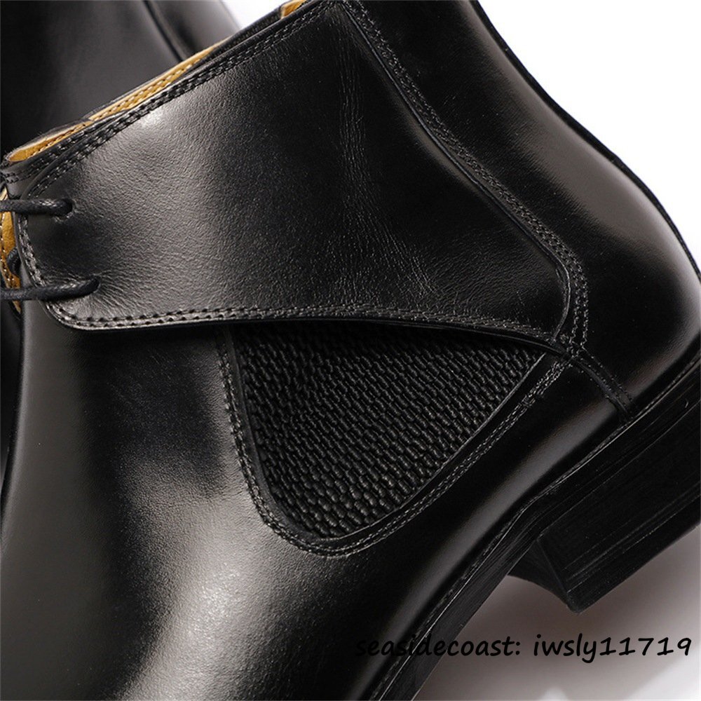 最高級★定価13万 マーティンブーツ 超希少 職人手作り 本革 レザーブーツ エンジニアブーツ ショートブーツ 牛革 紳士靴 ブラック 24.5cm