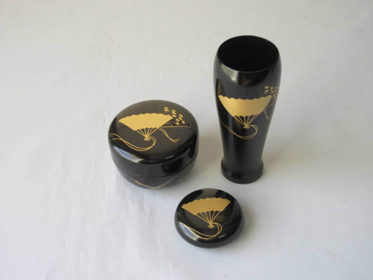 ⑥黒塗 扇金蒔絵 茶筅筒:美品 木製