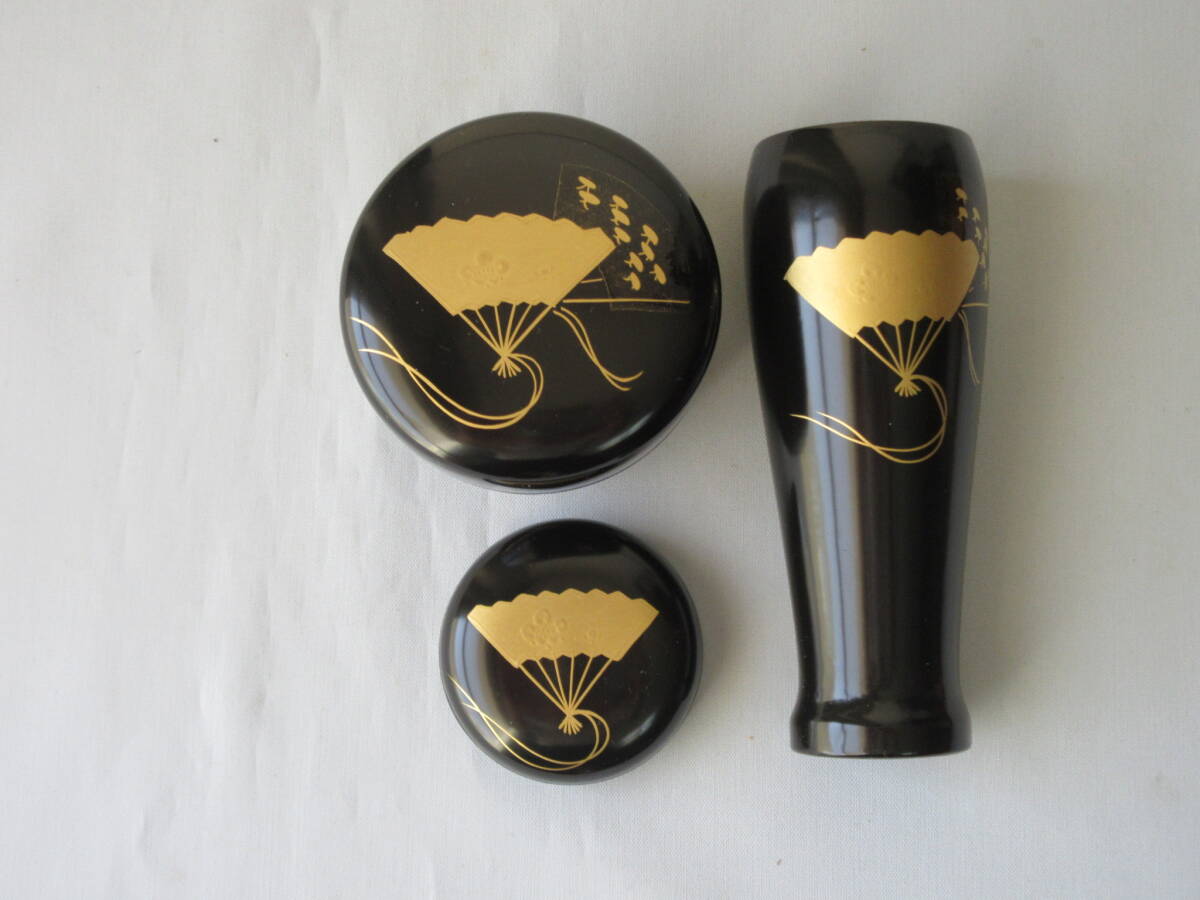 ⑦黒塗 扇金蒔絵 香合:美品 木製