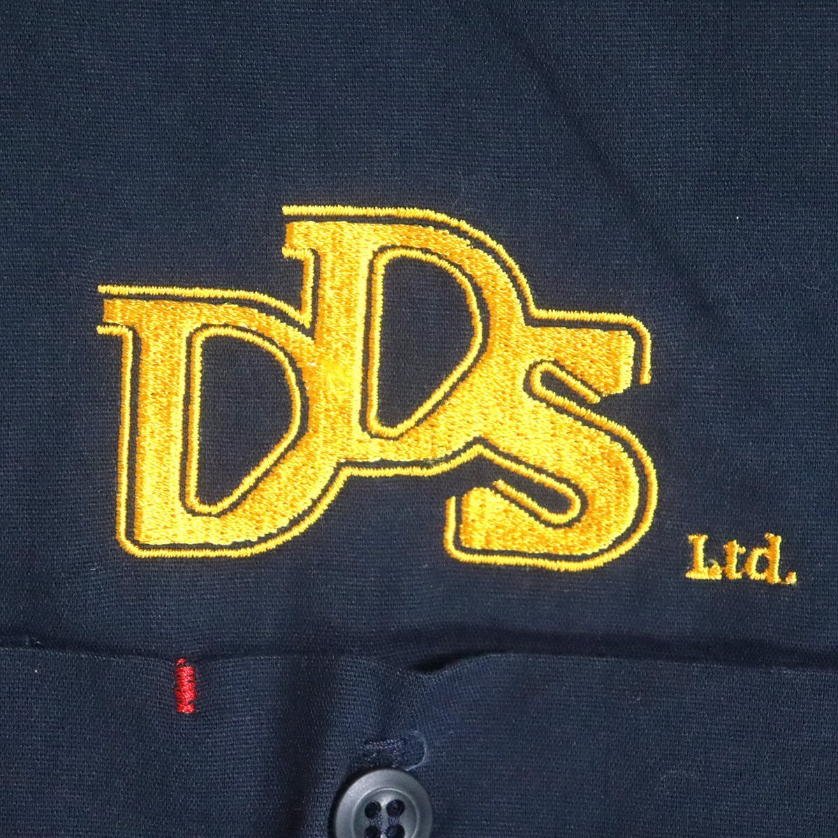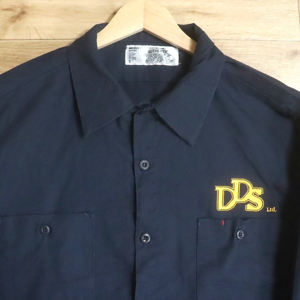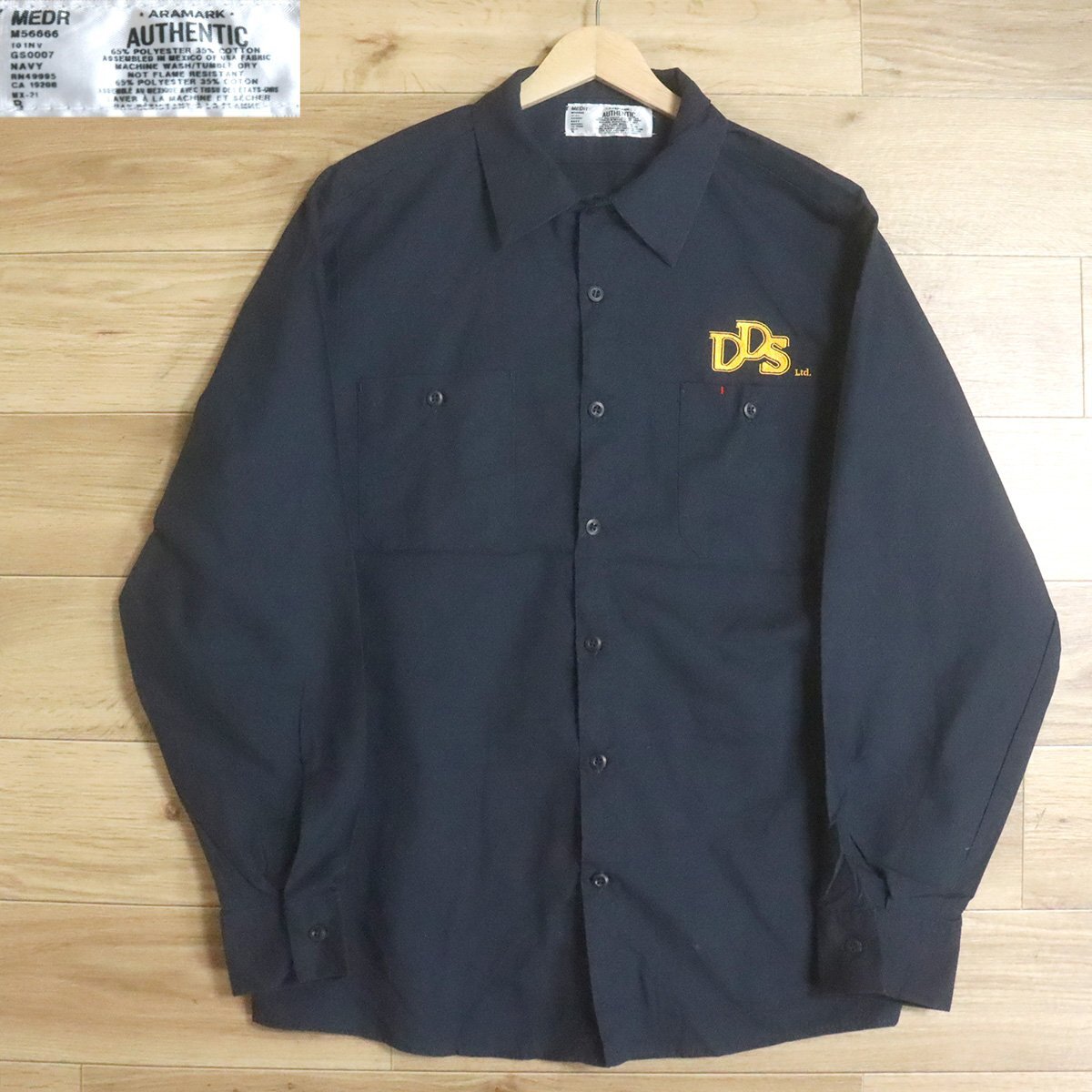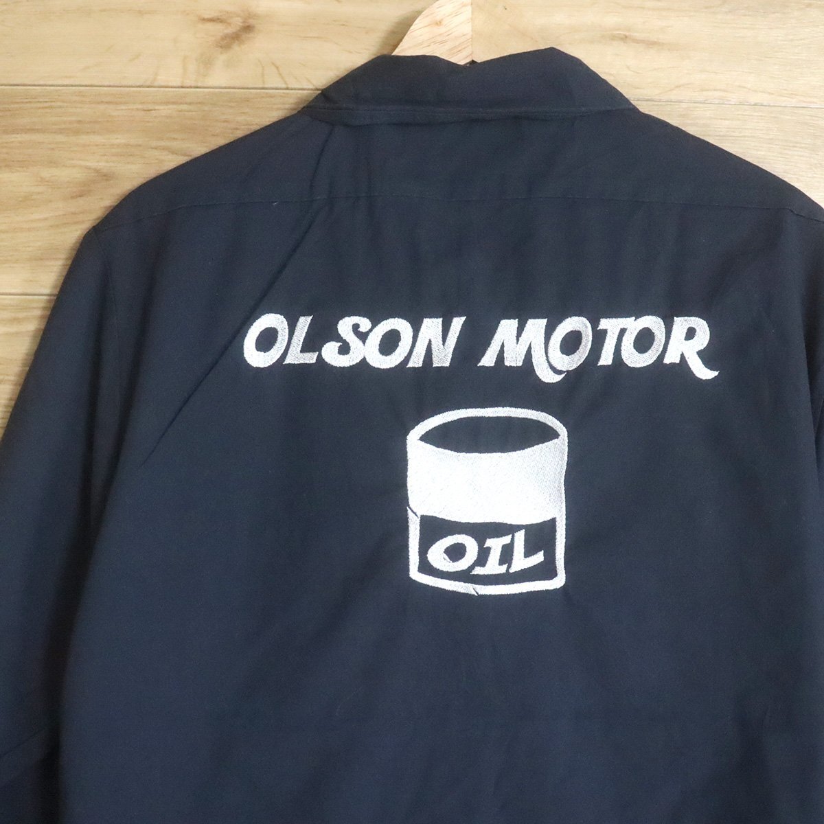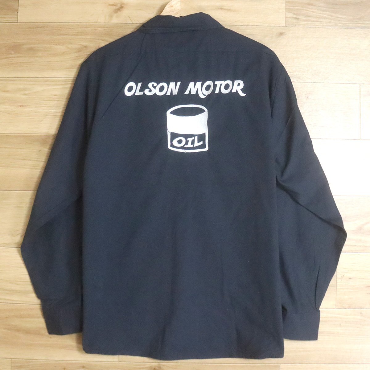 I5T/D10.23-2 アメリカ古着 AUTHENTIC ワークシャツ 長袖 メンズ M 文字 バック刺繍 Olson Motor OIL