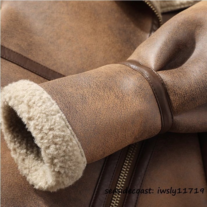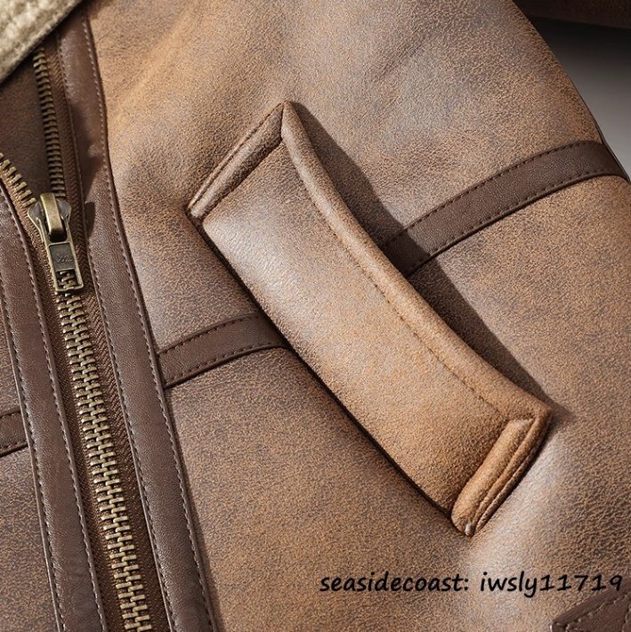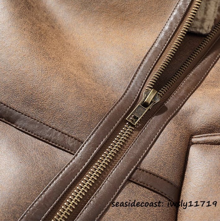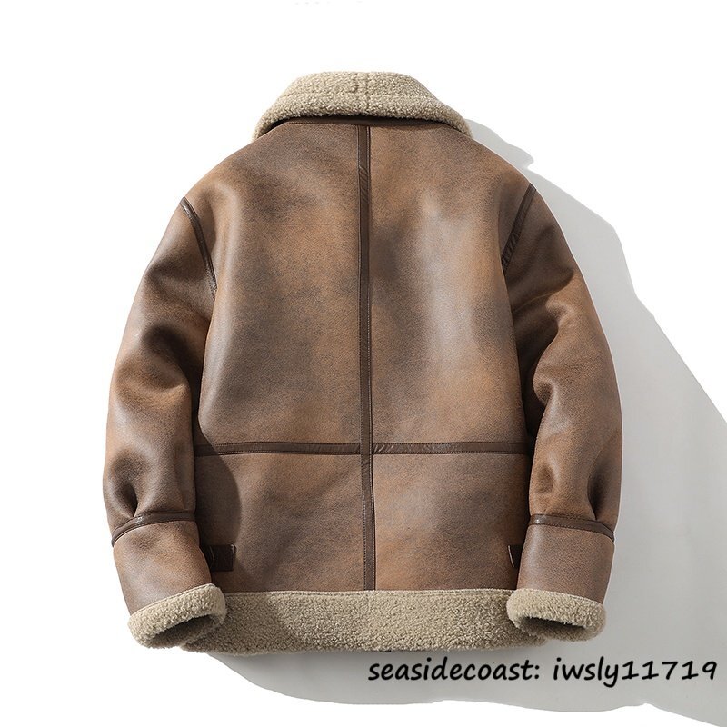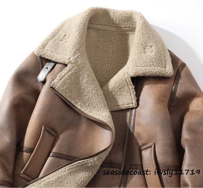 定価12万◆レザージャケット ムートンコート ファーコート 冬新品 毛皮 厚手 防寒 ライダース アウター ジャンバー ブルゾン ブラウン 4XL