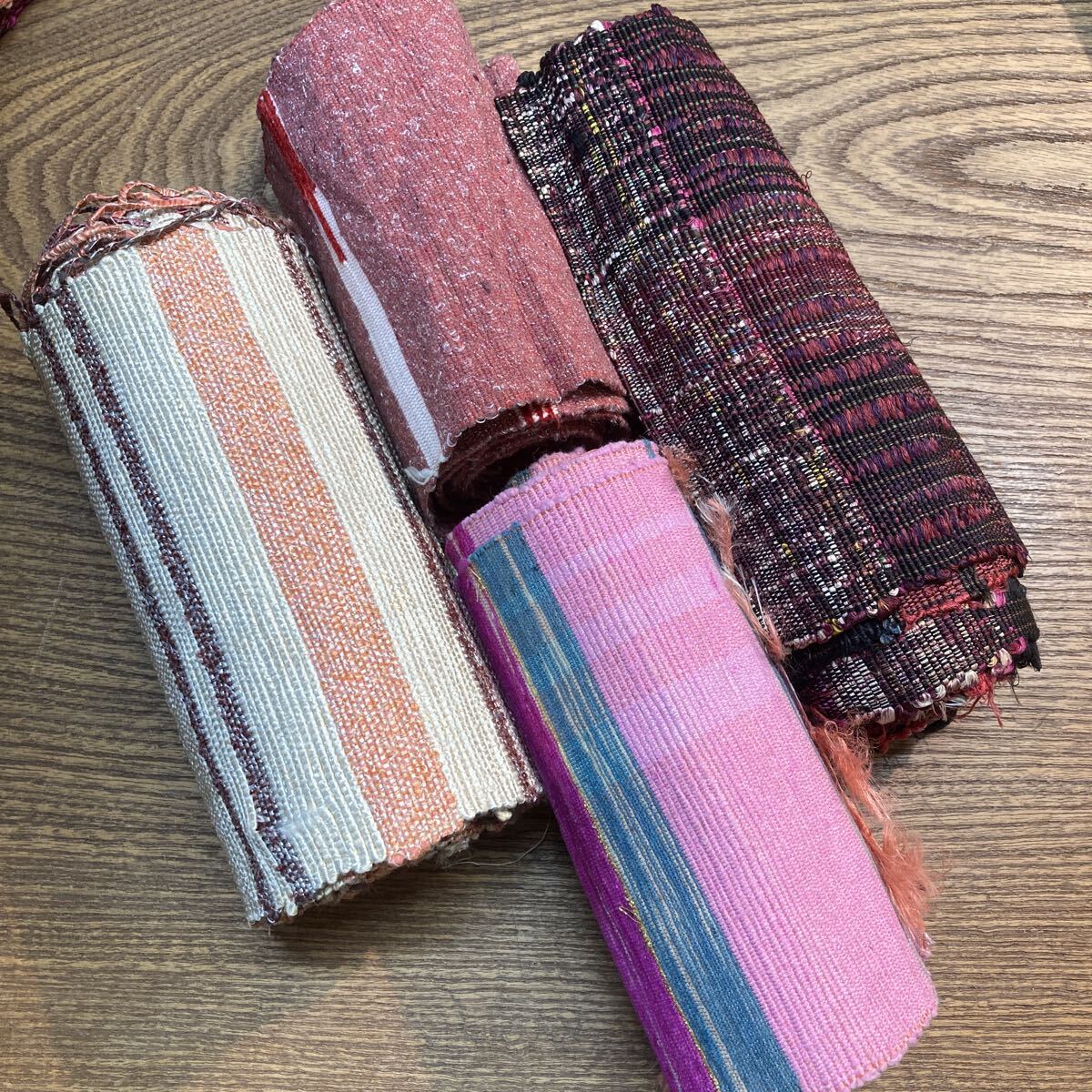 (s) 裂織24本まとめ売り 半幅帯 半巾 名古屋帯 当時物 古布 リメイク素材 総重量約6.5kg