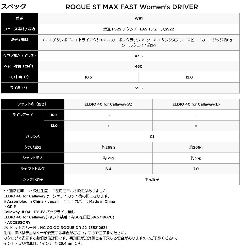 新品 女性用 キャロウェイ ROGUE ST MAX FAST ローグST マックス ファスト ドライバー 11.5° 純正カーボン ELDIO 40 for Callaway (L) 日本仕様 レディース |