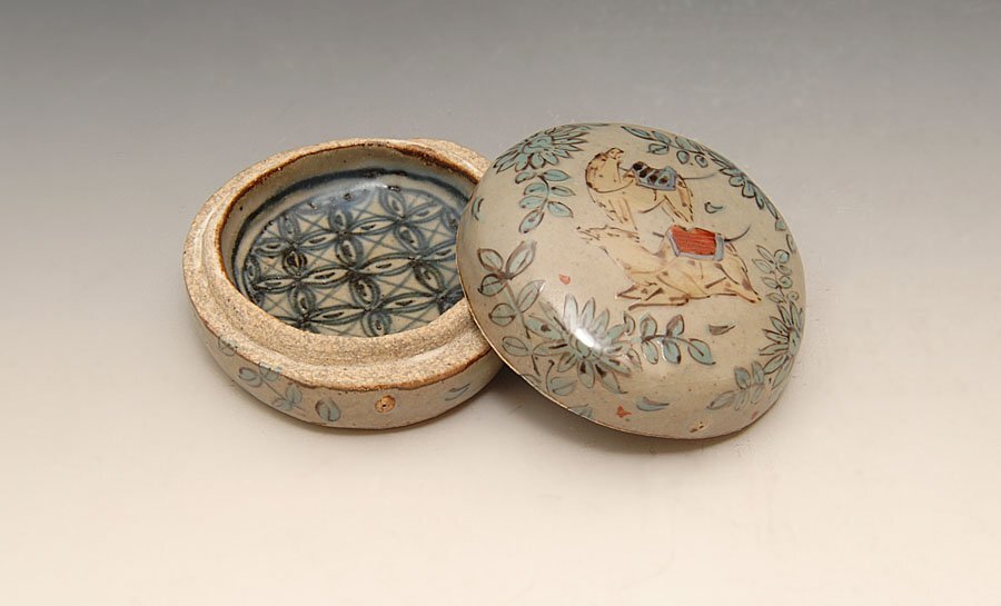 ☆星夢☆16 谷鳳窯 宮崎祐輔 色絵駱駝香合 共箱 茶道具