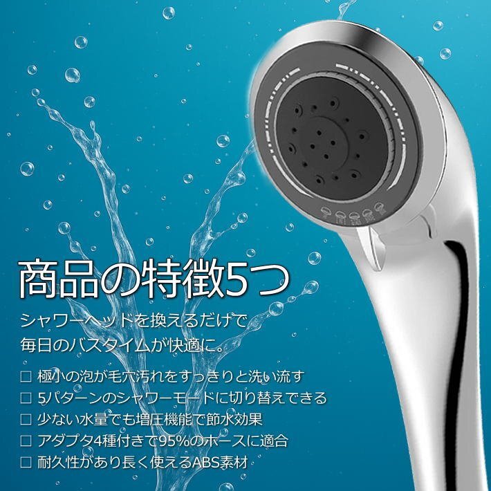 シャワーヘッド マイクロナノバブル ミスト 高水圧 7986698 多機能シャワー 保湿 シャワー 取付簡単 アダプター シルバー 新品
