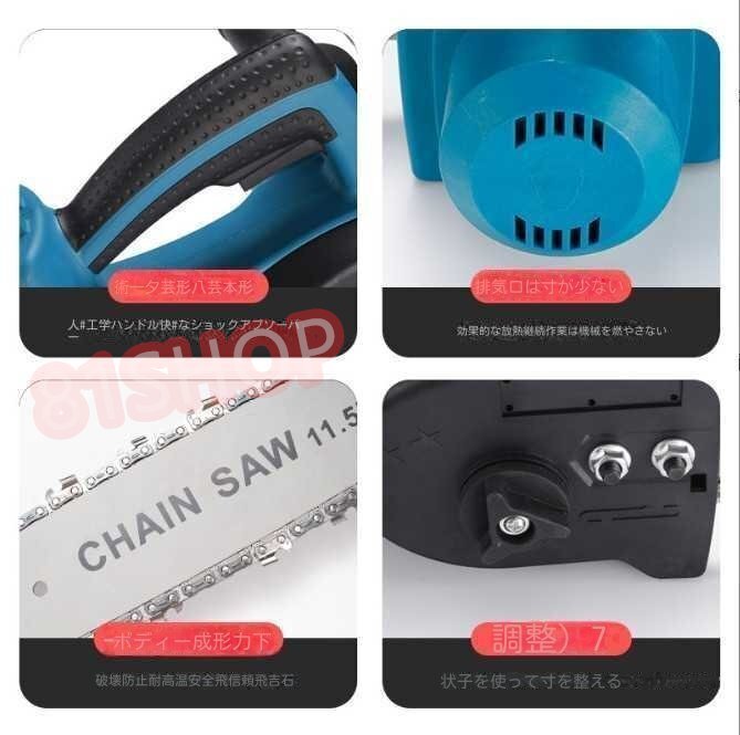 鋭いこぎりの刃が焼入れ加工施された素材を採用して、高硬度で耐磨耗性に優れていて、チェーンが容易に壊れません。コードレスチェーンソーは600wのハイパワーを持って、高性能ブラシレスモーターが最大26000回転/分に達し、過電流保護、過熱保護、などのインテリジェントな保護機能を提供して、作業中の安全を保護できます。
