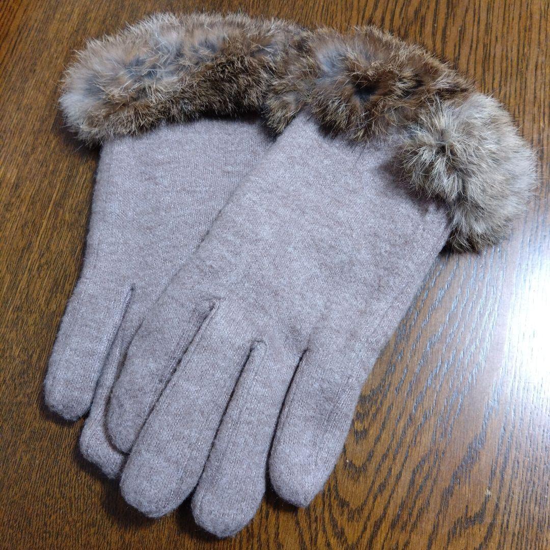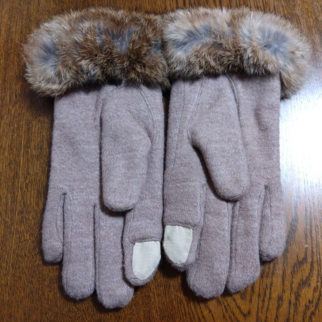 【送料無料★BleuBleuet ブルーブルーエ ラビットファー 手袋 グローブ ライトブラウン タッチパネル対応】