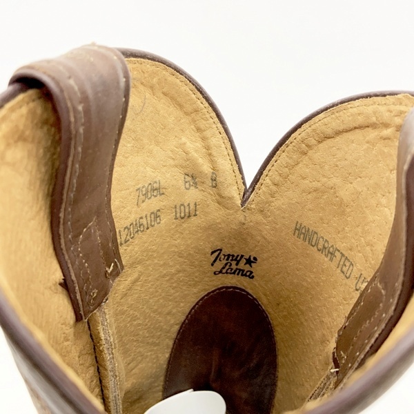 ランク:B 全体的にスレ傷、足首に履きジワなどは見受けられますが、目立ったダメージのない、比較的良好な商品です。 ※写真にないものは付属しておりません カラー:ブラウン ブランド名:Tony Lama メーカー型番:7906L 12046106 靴のサイズ(JP):23.5cm相当 ブランド名(カナ):トニーラマ 素材(生地・毛糸):レザー 個数:1 ブーツ種類:ウエスタン |