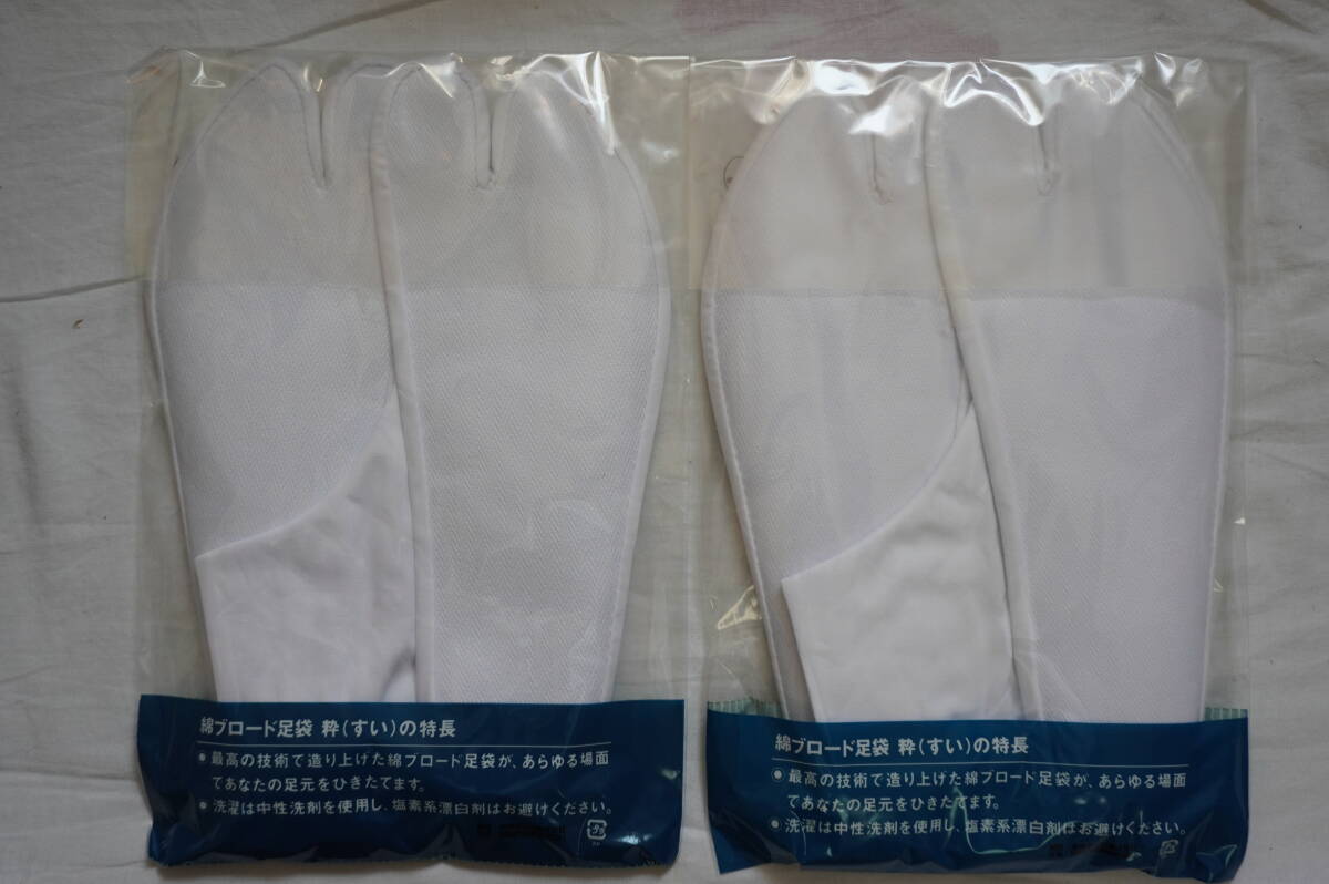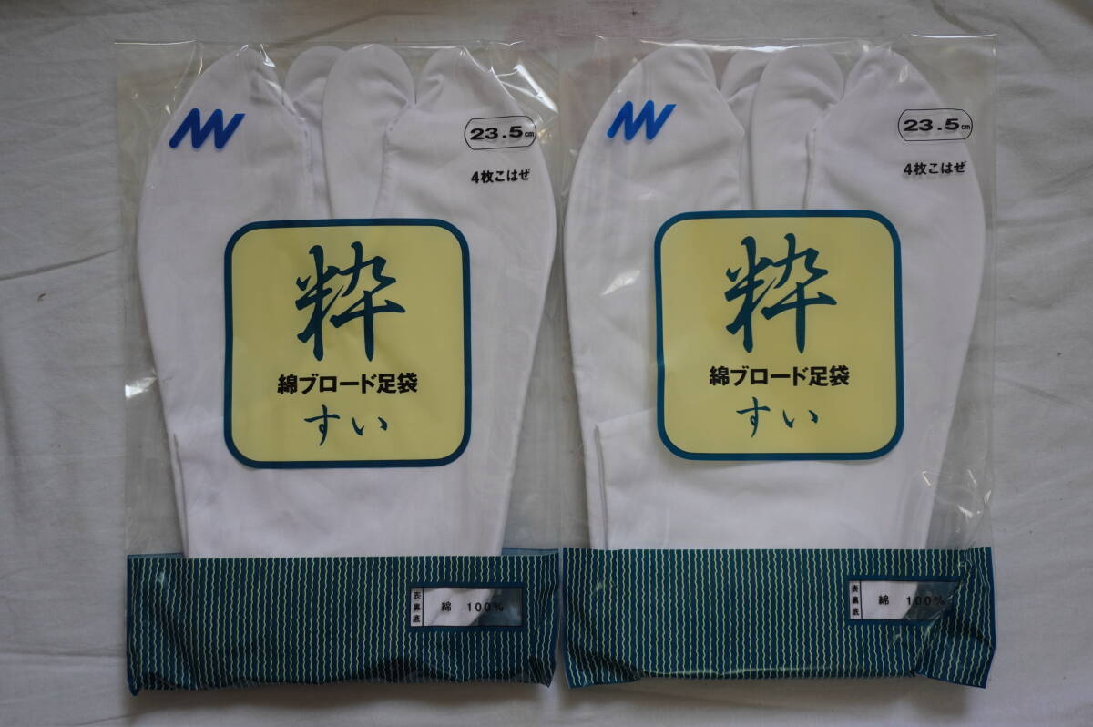 訳あり=長期在庫品)即決!検品のため開封の白足袋2足 綿ブロード 4枚こはぜ 23,5cm送料185円~ 2番