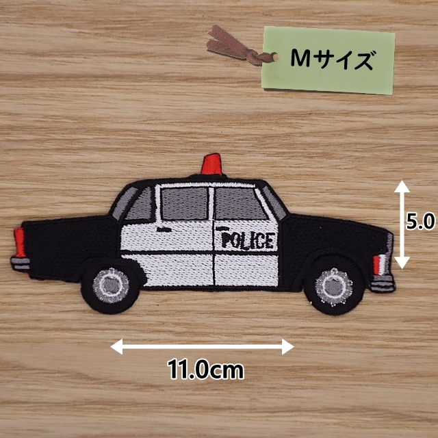 アイロン ワッペン( パトカー 黒色 )( Mサイズ )