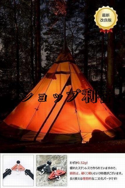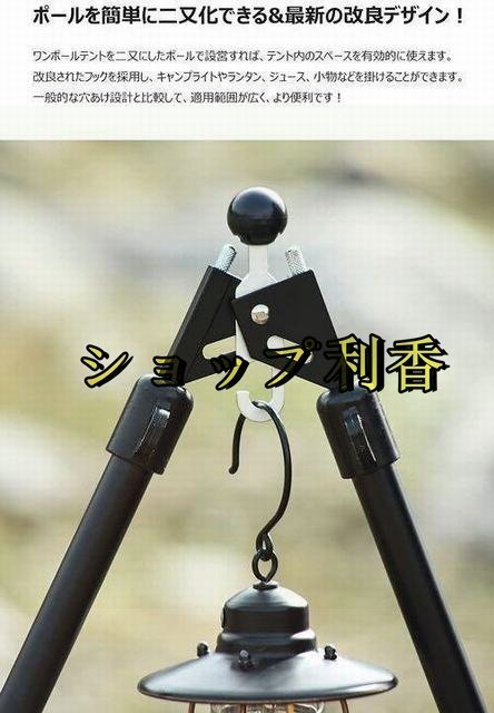 【ポールを簡単に二又化できる&最新の改良デザイン】 ワンポールテントを二又にしたポールで設営すれば、テント内のスペースを有効的に使えます。改良されたフックを採用し、キャンプライトやランタン、ジュース、小物などを掛けることができます。一般的な穴あけ設計と比較して、適用範囲が広く、より便利です。