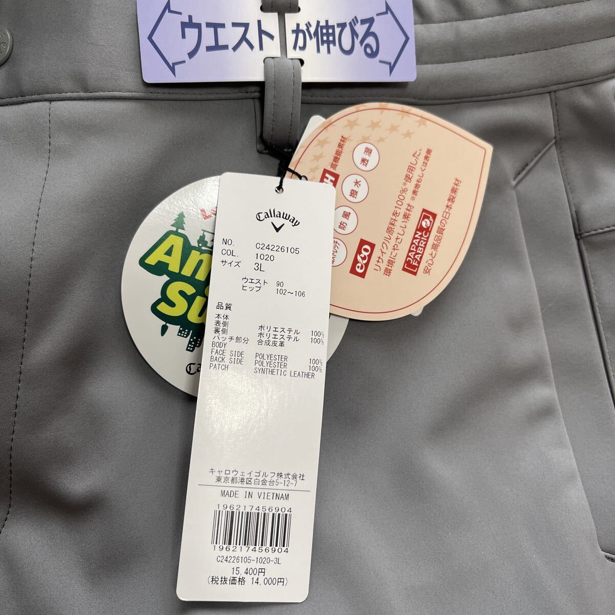 BIGサイズ(3L)ウエスト90/ヒップ102-106cm(メーカー参照)ウエスト45cm〜(ウエストが伸びる加工)ヒップ109cm/股上27.5cm/股下71cm/ワタリ幅36.5cm/裾幅14.5cm(伸縮ゴムストレッチ加工)素材ECOリサイクルポリエステル製/パッチ合成皮革/多層ダンボール構造ボンディング加工/高機能素材STAR STRETCH防風保温性撥水透湿性高ストレッチAnytime Sweat気軽に快適プレイ素材加工/蒸れ軽減ベンチレーション機能(ポケット兼用)開閉部Callawayロゴボタン+ジッパー+ドローコード調節可能/ベルトループ付/ポケット×4/カラーグレー×ブラックCALLAWAYロゴ+Callaway Vパッチ付/直営店秋冬モデル人気完売色サイズ大特価商品(定価15,400円税込)宜しくお願い致します。写真撮影での色合いが遮光率により実際の色と異なる場合が有ります。予めご了承願います(((価値観の相違など回避の為キャロウェイゴルフ商品に不慣れな方や色合いが特に気になる方はご遠慮下さい)))最終お取引受取連絡完了可能な方でのご落札をお願い致します。