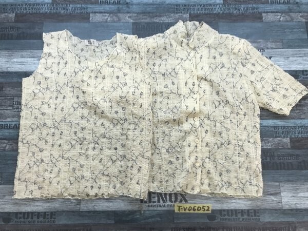 サイズはMで、半袖ブラウスは着丈54cm、身幅45cm、袖丈28cm です。