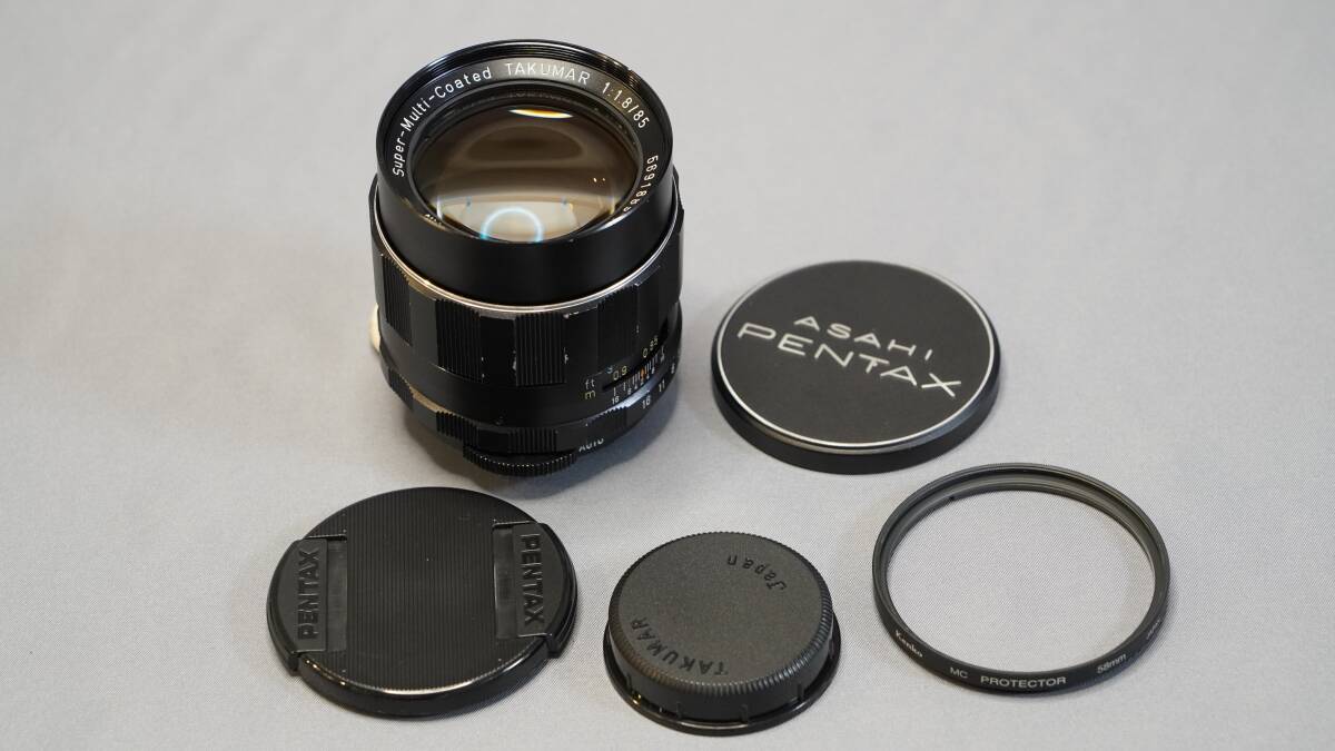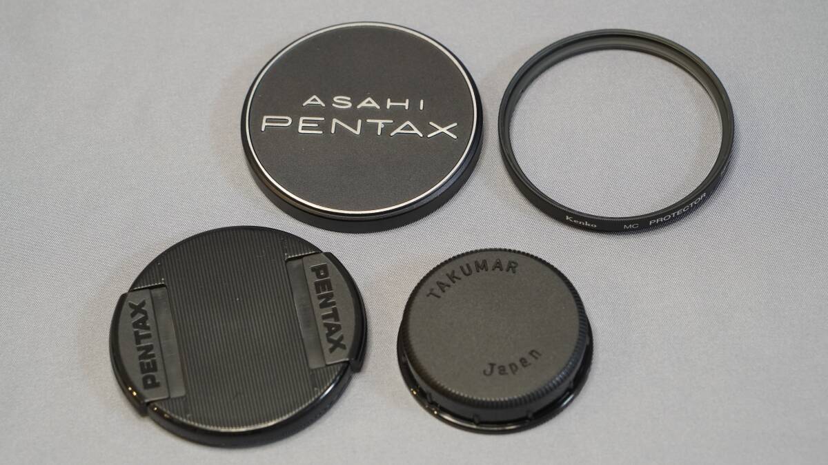 ASAHI PENTAX(アサヒ ペンタックス) 一眼レフ用交換レンズ Super-Multi-Coated TAKUMAR(SMC タクマー) 85mmF1.8の中古品で、Kenko MC PROTECTORとかぶせ式レンズキャップが付属します。