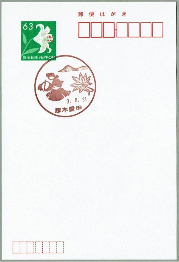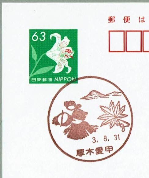 風景印使用郵便局の一時閉鎖前最終日に押印した官製はがき(官白)。