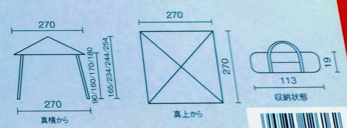 サイズ:2.7m2.7m 高さ1.6〜2.5m