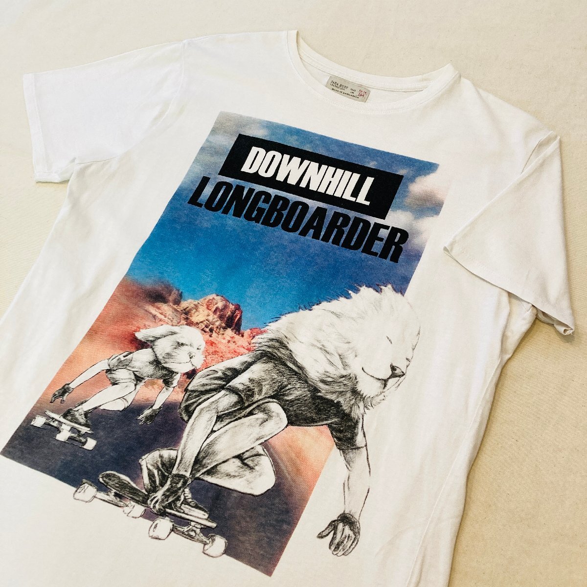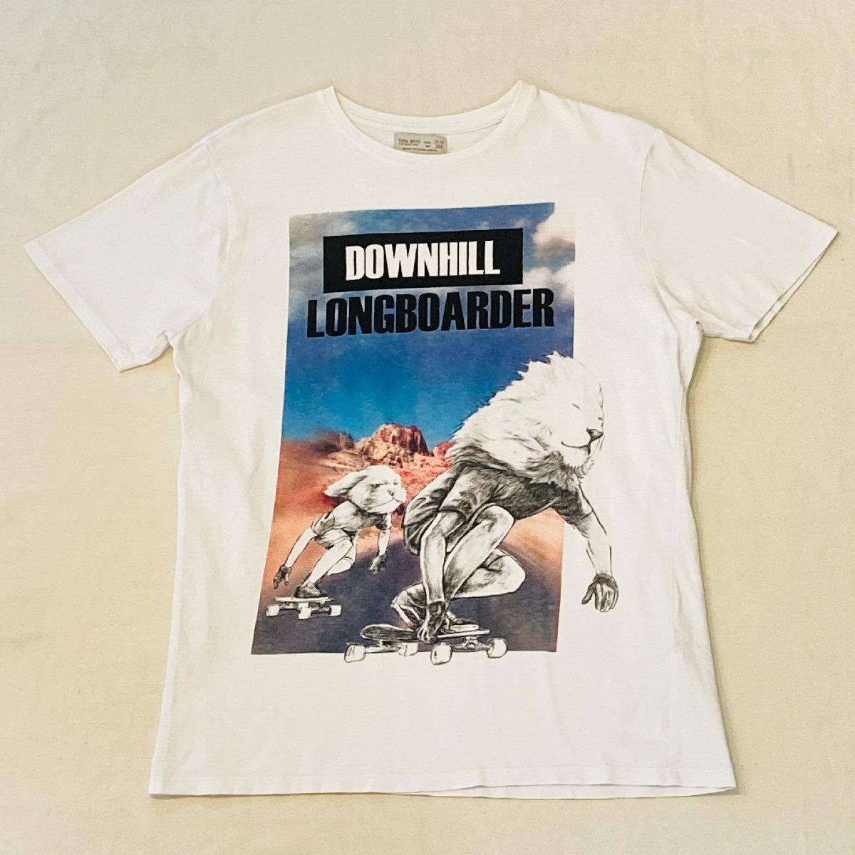 ZARA ザラ DOWNHILL LONGBORDER プリント Tシャツ ホワイト/白 13-14