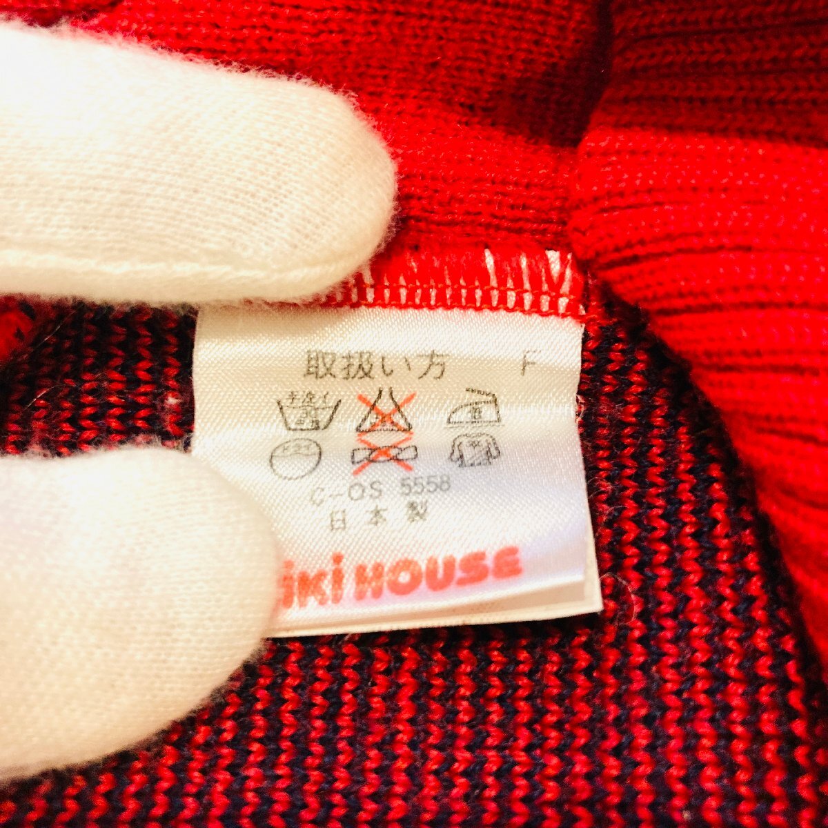 美品 mikihouse MEN'S MADE IN JAPAN ロゴ ニット セーター レッド/赤 M