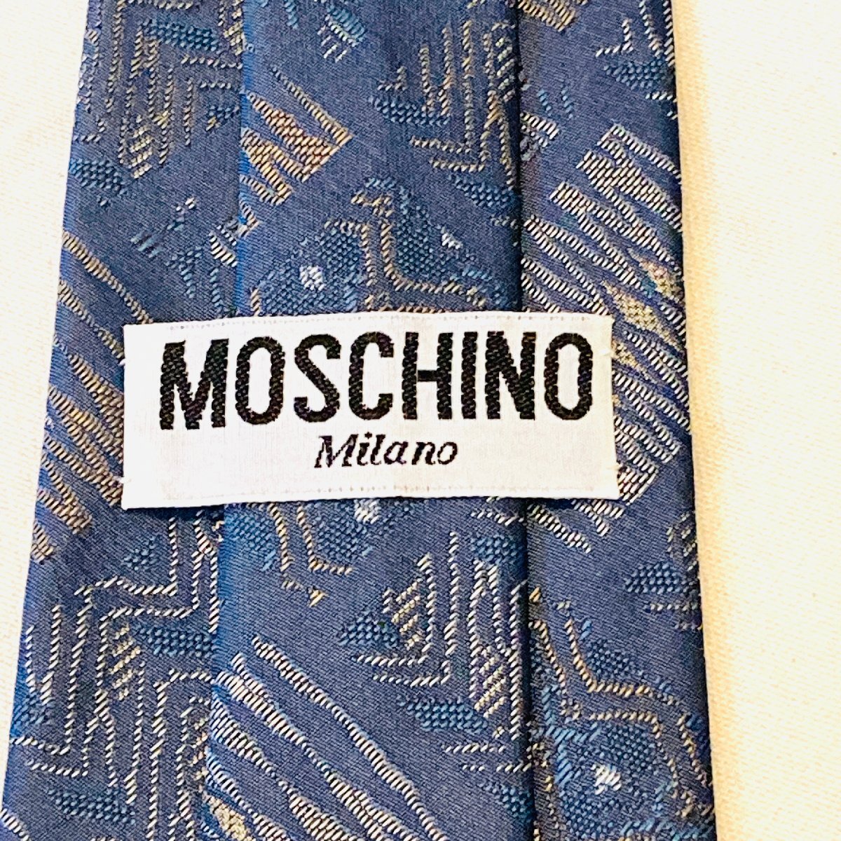 MOSCHINO Milano モスキーノ 絹 シルク SILK 100% 高級 ネクタイ ブルー系 アート系 総柄