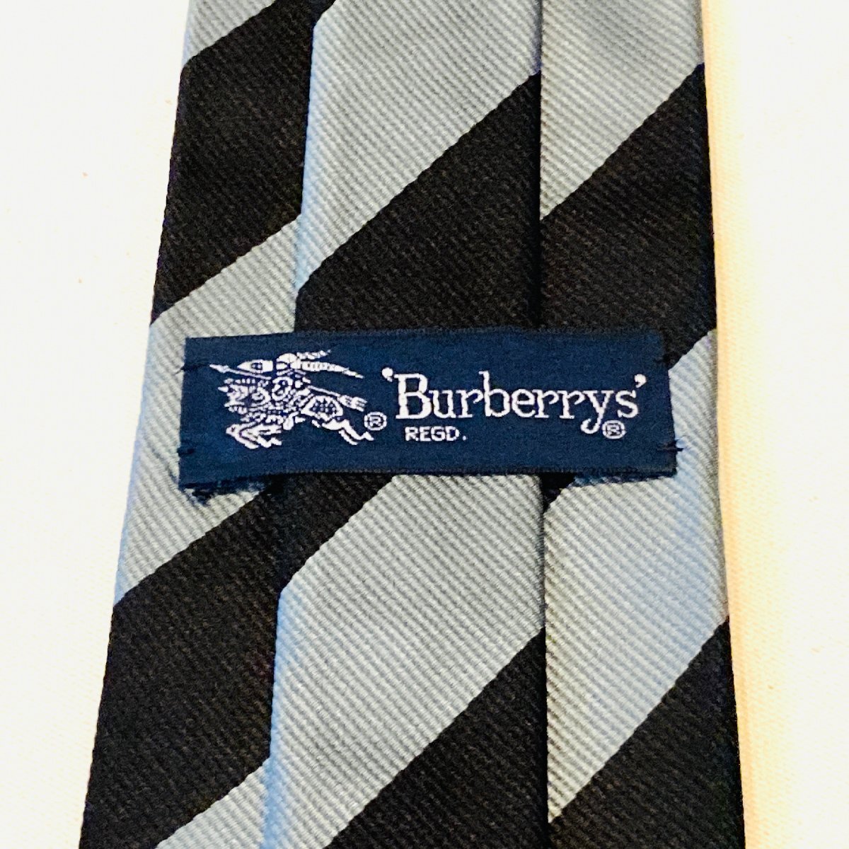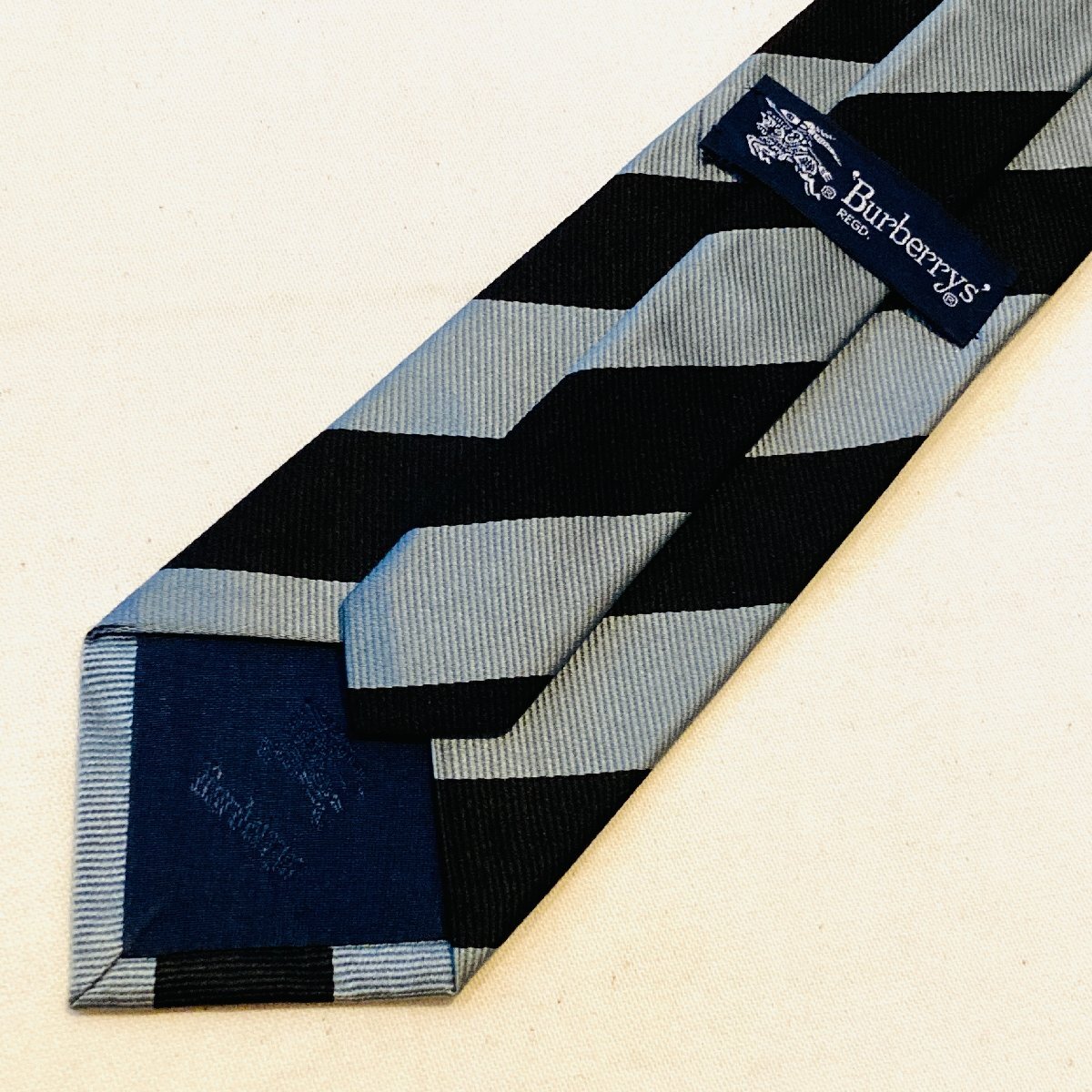 Burberrys バーバリー 絹 シルク SILK 100% 高級 ネクタイ グレー/ブラック ストライプ柄 ロゴ ワンポイント