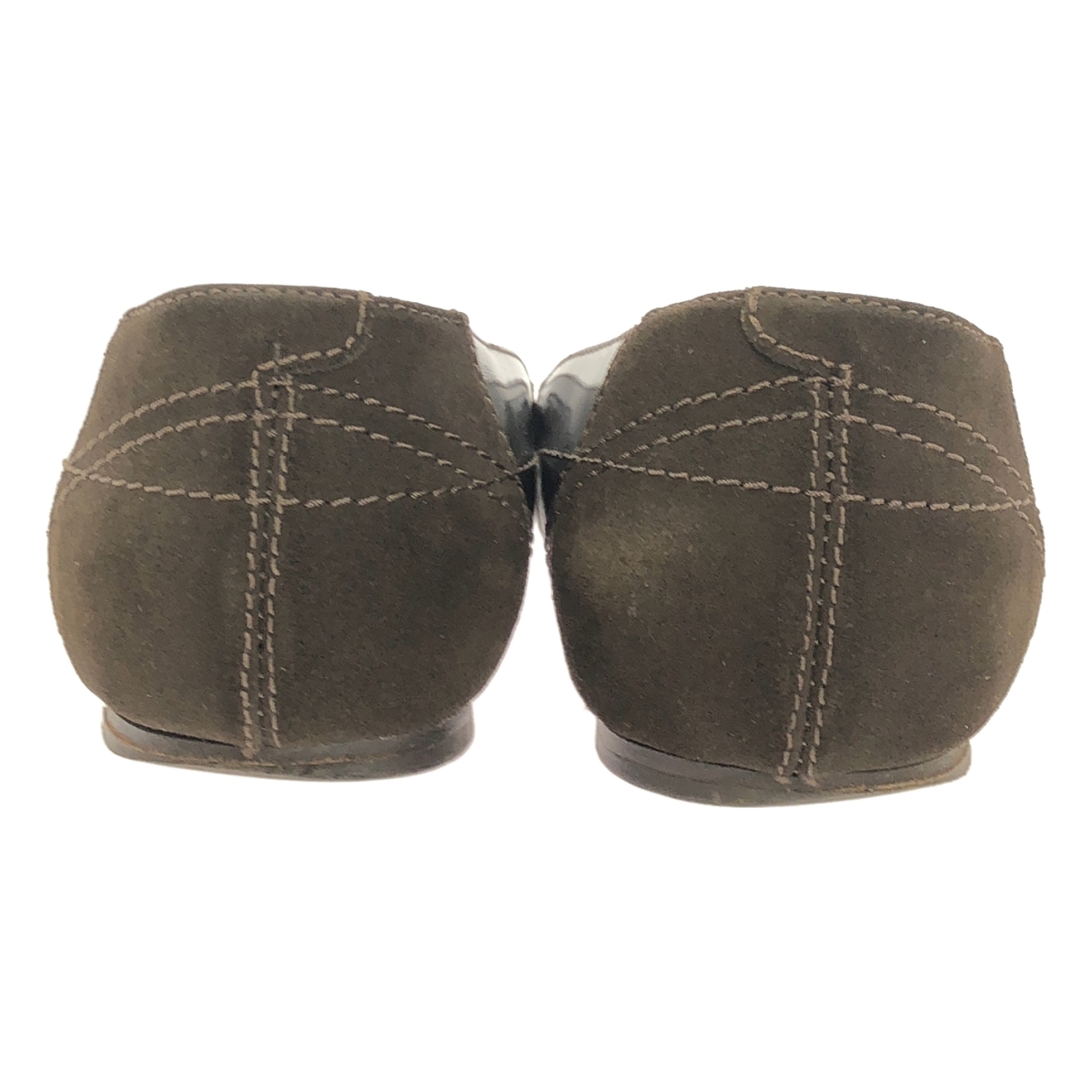 レザー スエード切替 フラットパンプス