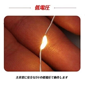 | 【低電圧&防水】 | 取り付けと使用にご安心ください。使用中の飾りライトに触れても、皮膚や体には危険を及ぼすことがありません。とても安全でご心配なく使用してください。また、防水仕様で、軽微な湿度による電気事故を防止できます。 |