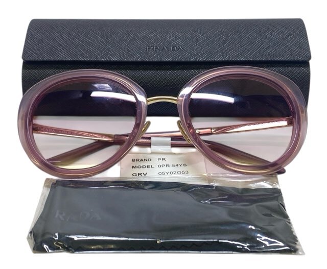 未使用 プラダ サングラス PRADA PR 54YS オーバル パープル レディース メンズ ゴールド ロゴ ピンク 【中古】