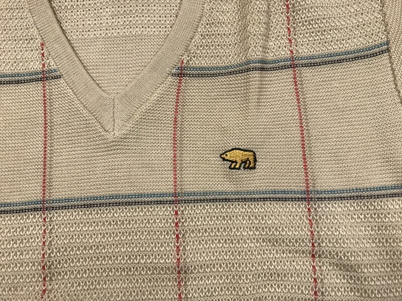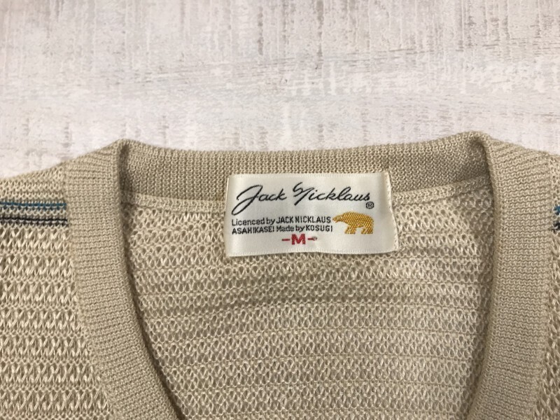 Jack Nicklaus ジャックニクラス Golden bear ゴールデンベア ゴルフ 麻混 Vネック チェック サマーニット セーター メンズ M ベージュ です。