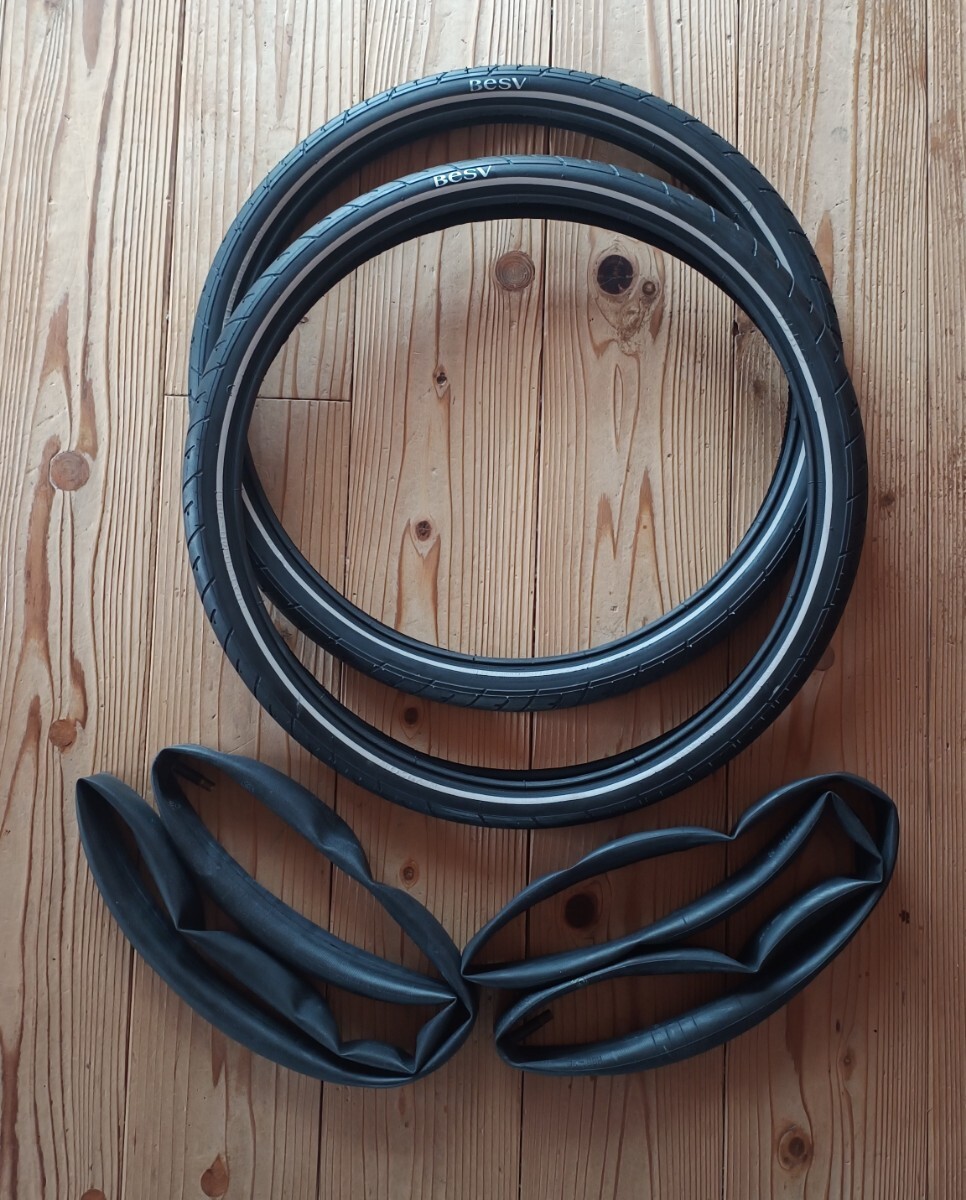 他タイヤに交換のため、BESV PSFから取り外したタイヤとチューブの前後2本セット。サイズは20x1.50(40-406)です。新車から約30km走行品。折り畳んで宅急便easy80で配送します。