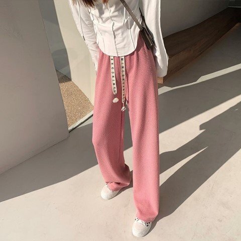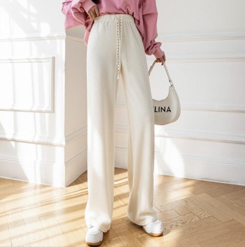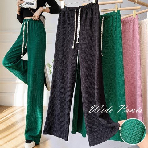 ・リラクシーな履き心地のエンボス加工ワイドパンツ。シワになりにくい凸凹デザイン生地です。