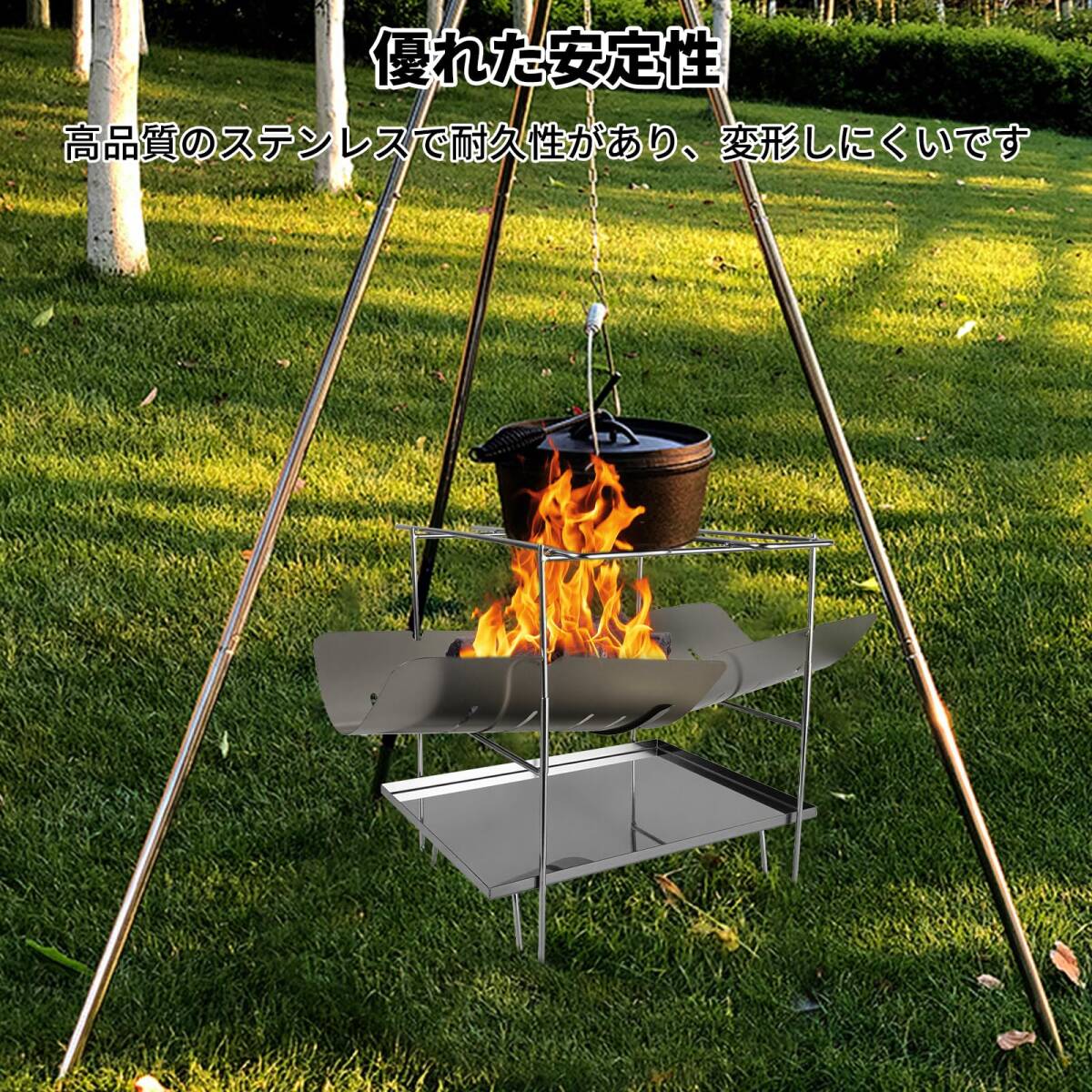 【優れた安定性と耐久性】高品質のステンレスで作られており、耐久性があり、変形しにくいです。 丈夫で耐久性に優れており、長くご使用いただけます。この焚き火台はステンレス製で、完全に洗えるので、錆びる心配がありません。