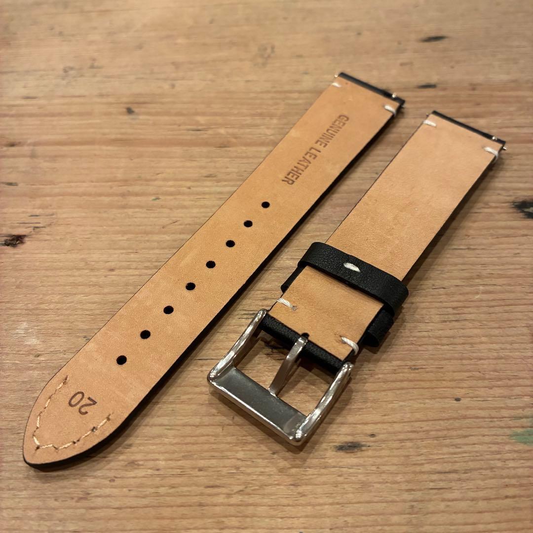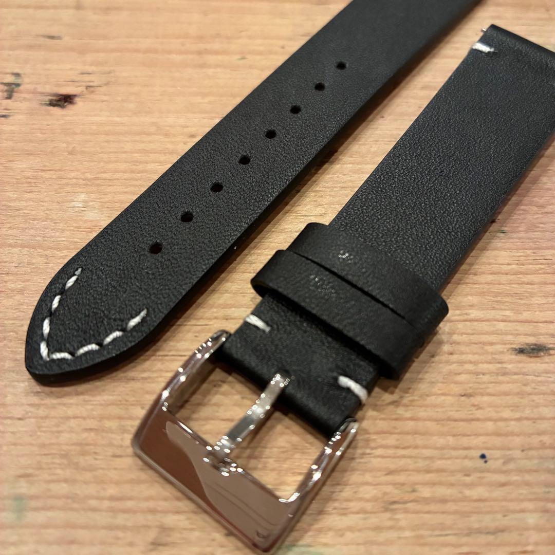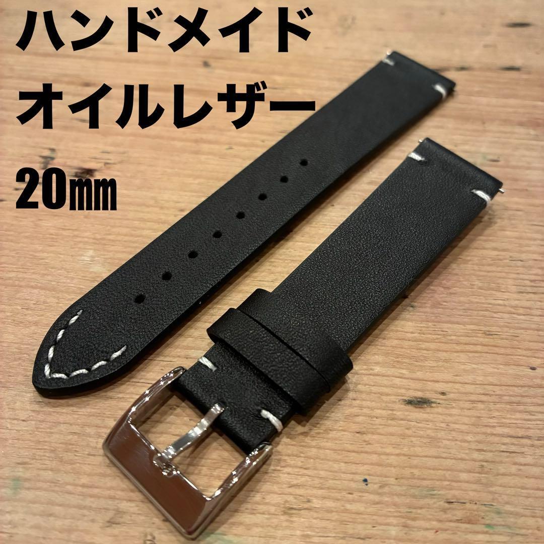 新品【ハンドメイド オイルレザー】時計ベルト ブラック 20㎜