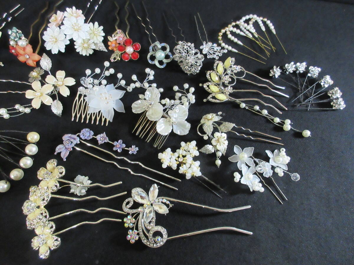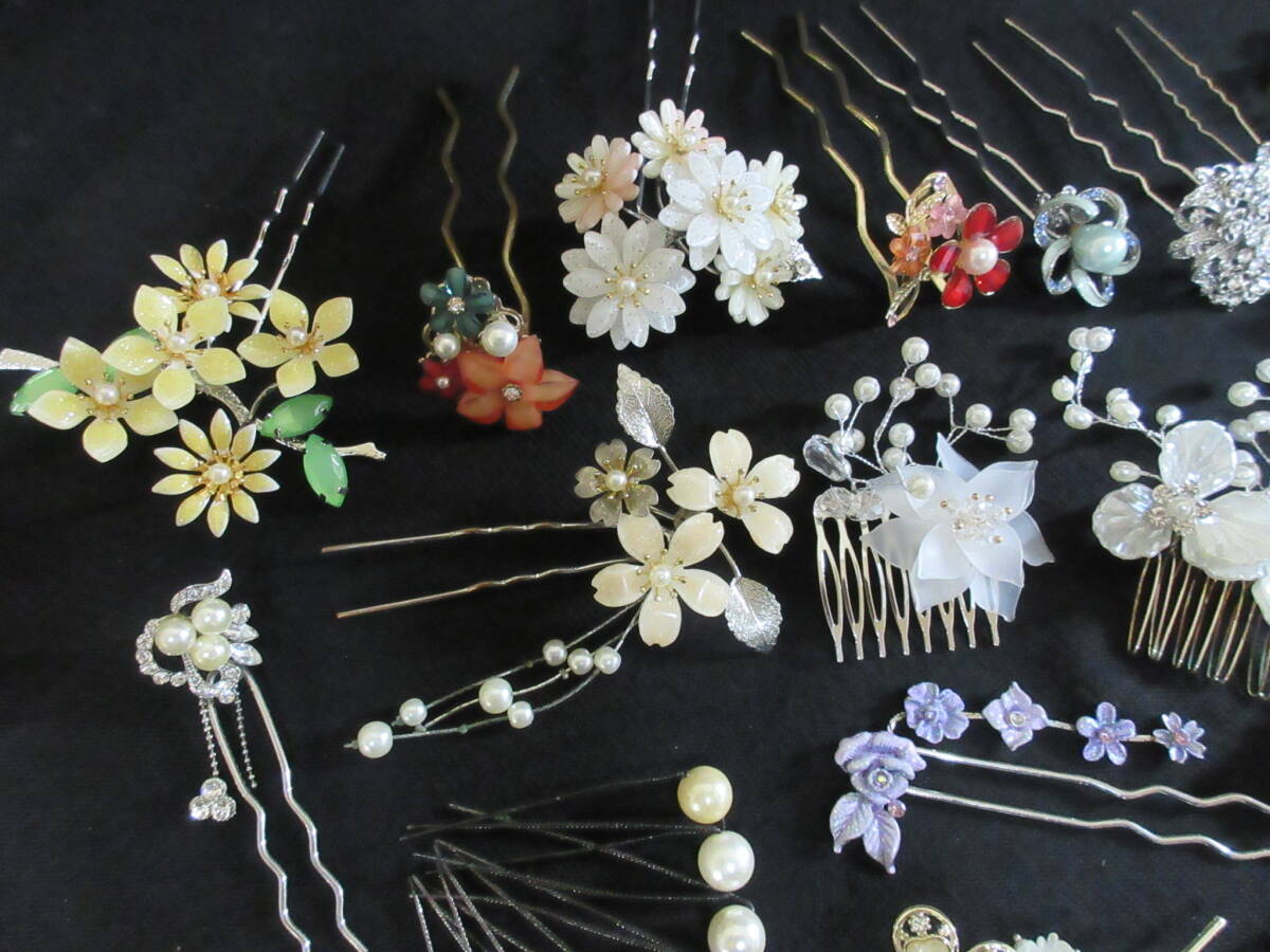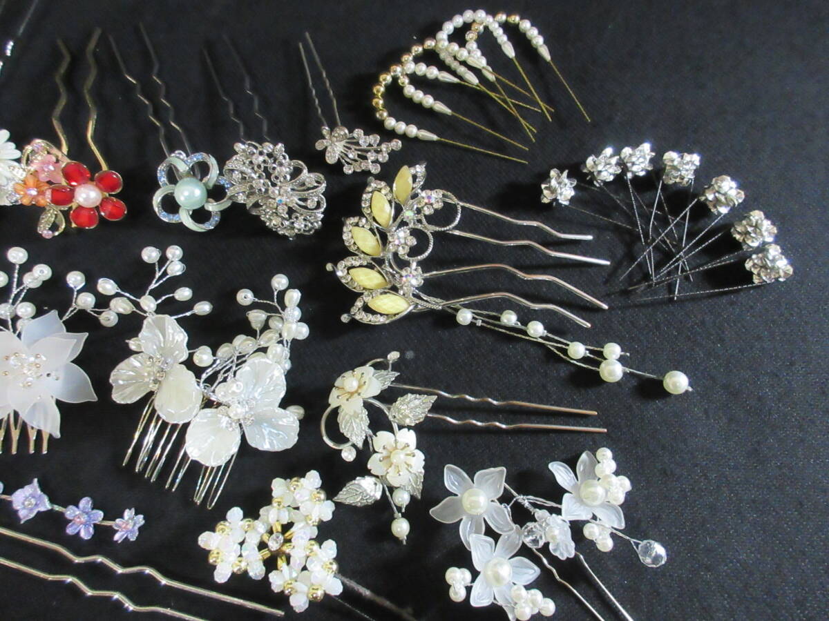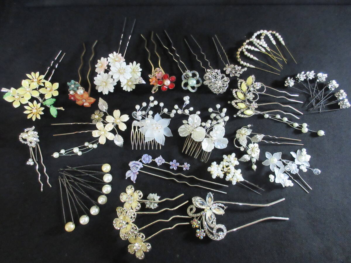 *100円~【大量】和服/着物/装飾品 和装小物 かんざし くしかんざし 36点セット ガラスビーズ/パール/シェル/ラインストーン*K-63
