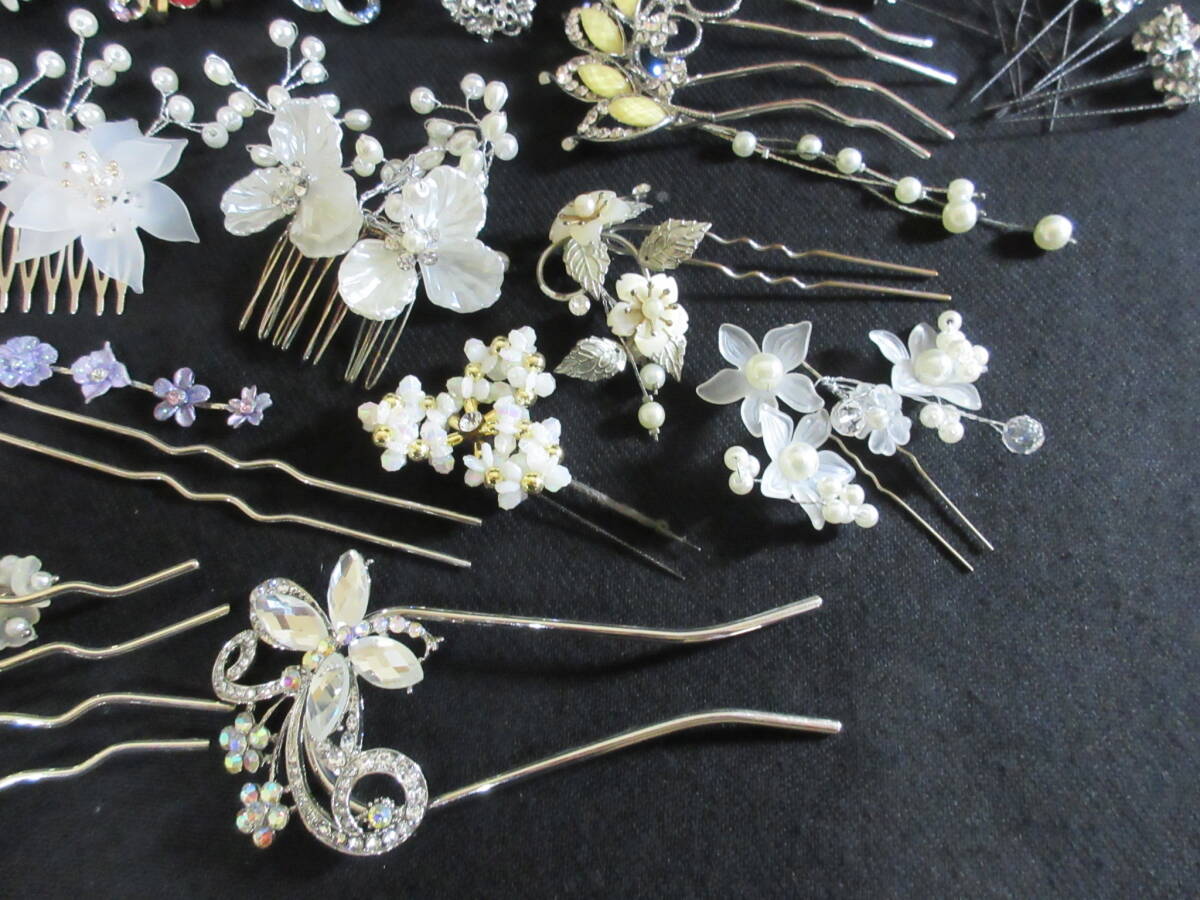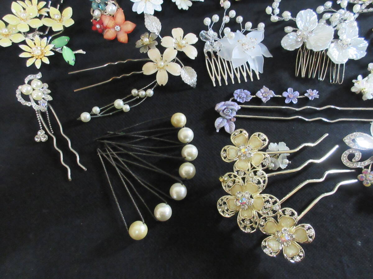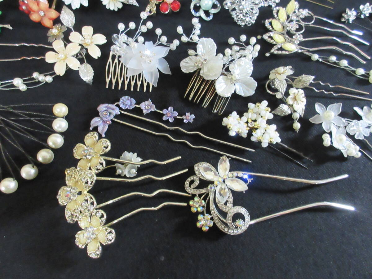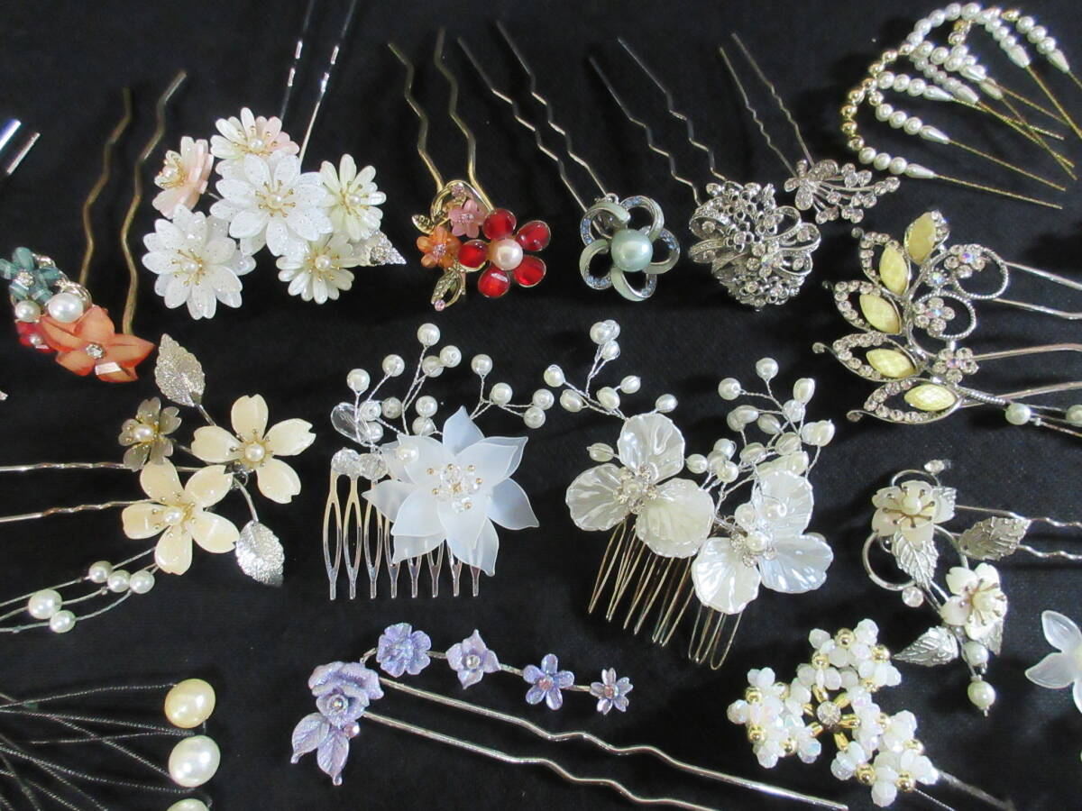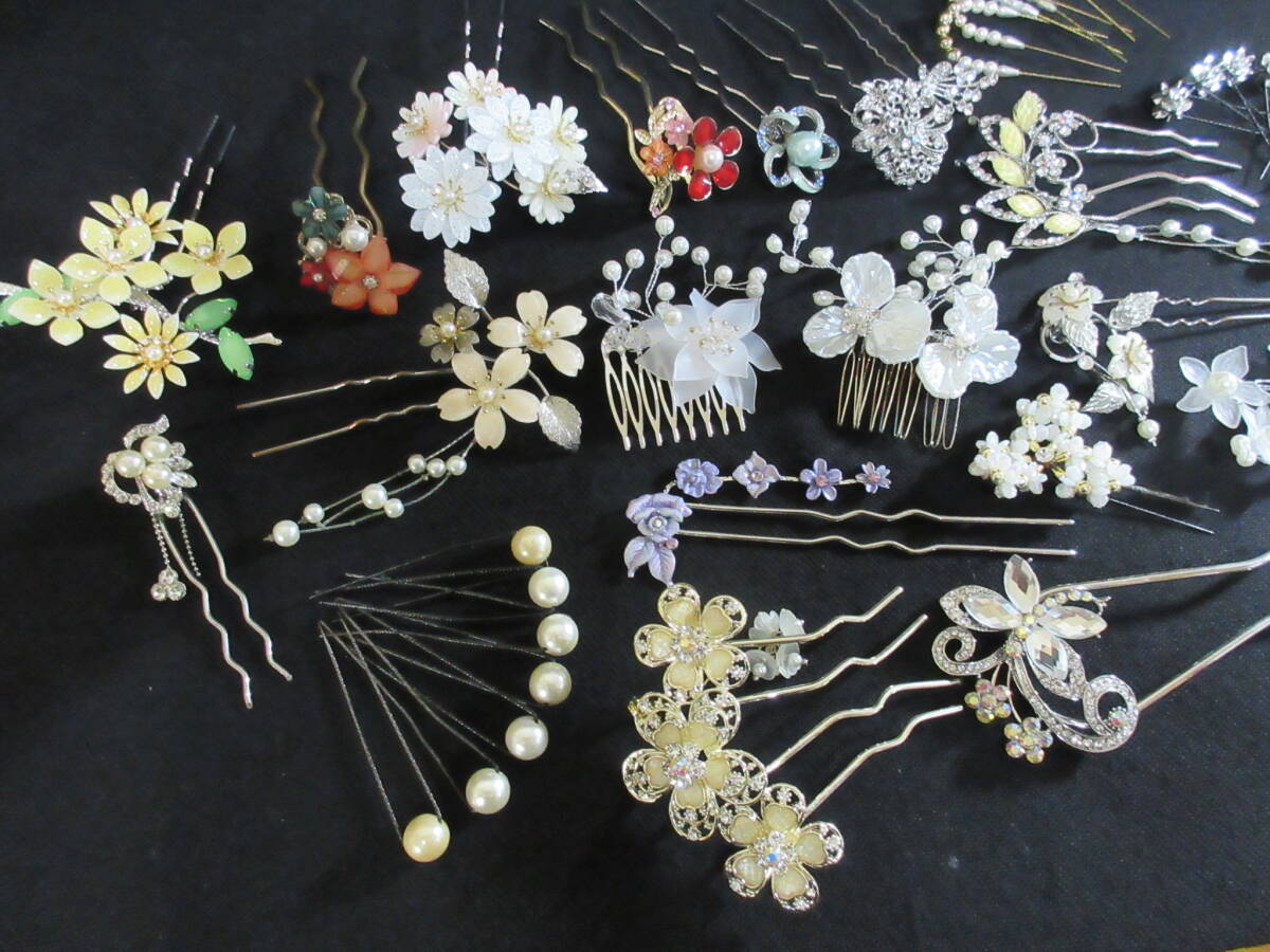 *100円~【大量】和服/着物/装飾品 和装小物 かんざし くしかんざし 36点セット ガラスビーズ/パール/シェル/ラインストーン*K-63