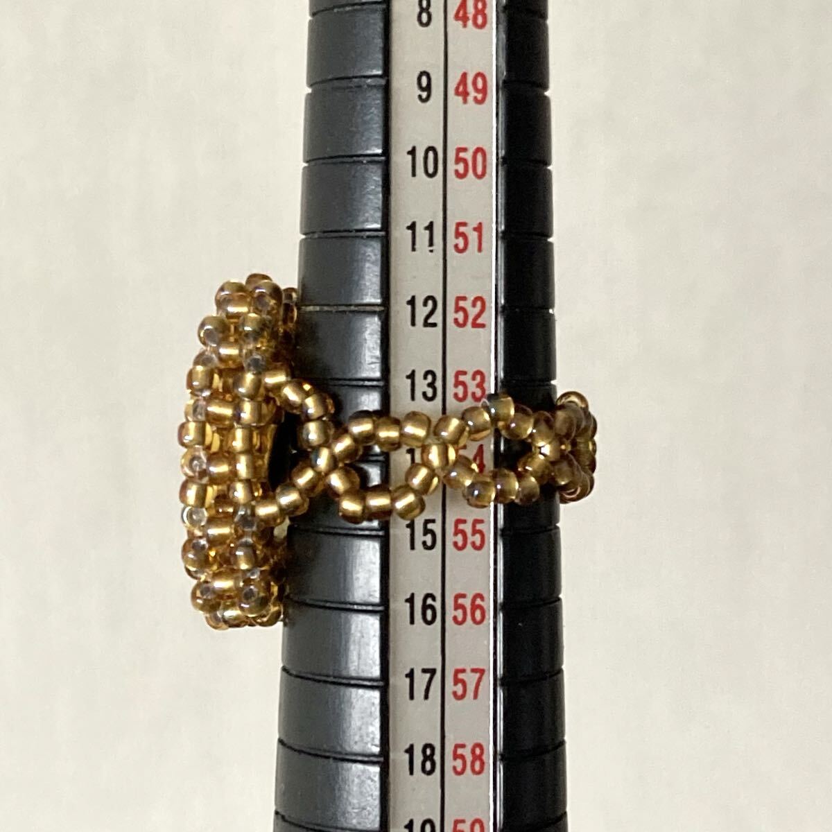 サイズは指周り約5.4cmです。(テグスなので前後します。)