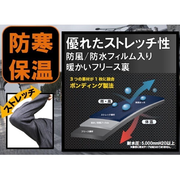 3層構造のボンディング製法(多層生地を一体化する製法)により、動きやすさ・保温性・耐久性をバランスよく実現。